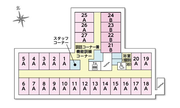 - ※適切な介護サービスをご提供するために一定期間を設け、医師の意見を聞いたうえで居室を変更させていただく場合があります。この場合ご本人及び、身元引受人の同意のうえで実施いたします。居室タイプにより居室料相当額が変更となる場合があります。