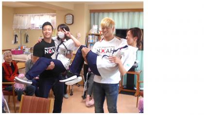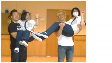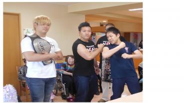 一見するとお二人とも爽やかな青年という感じですが、腕の太さ、胸板の厚さなど、やはりプロレスラーですね。また、女性職員を軽々と持ちあげてくれました。