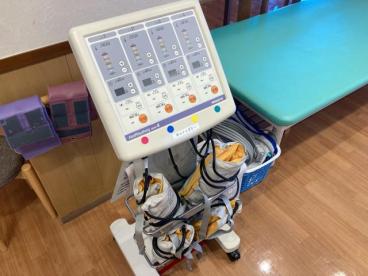 ホットリズミーとは、痛みや凝っている部分にパックをあて、振動と温熱で十分に温めることで血行、新陳代謝を促進させ、鎮痛や筋の緊張をほぐす機器です。