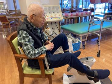 ツクイ・サンシャイン会津若松では、食堂の一角に機能訓練スペースを設け、個別訓練や小集団での運動を行っております。いくつかのリハビリ機器を設置し、お客様の運動機能向上のために活用しています。