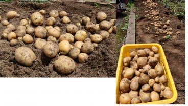 次々にジャガイモが掘り出されます。作業を終わってみると、大きなジャガイモがコンテナに入りきらないくらい収穫できました。