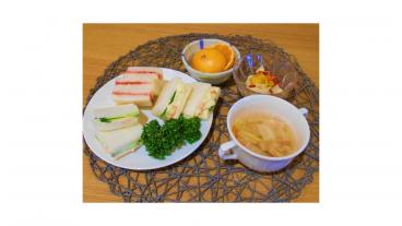 サンドイッチに合うスープは旬を迎える白菜のコンソメ仕立て。目前に来ている冬を感じて頂けたでしょうか。