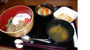 甘じょっぱい牛肉と温泉卵の牛丼は、いつも好評を頂いています。