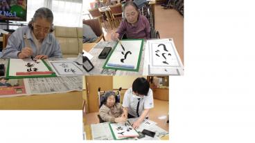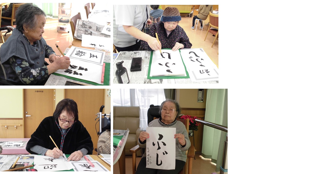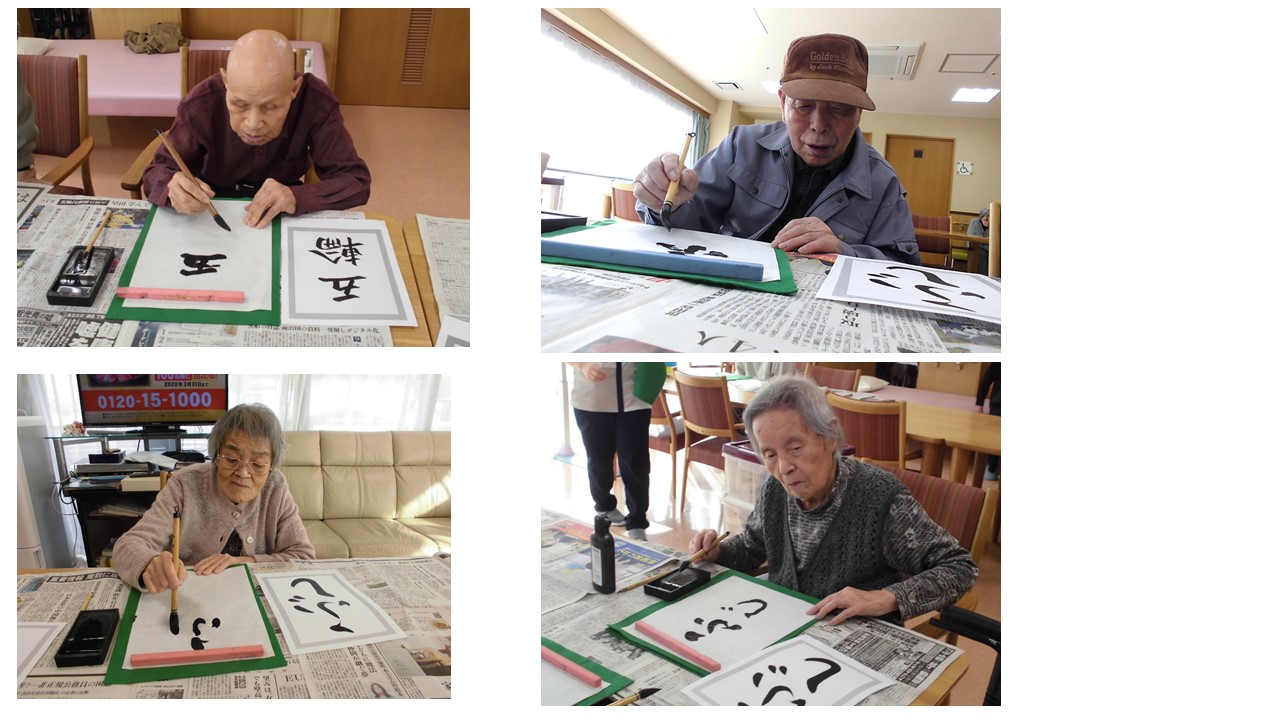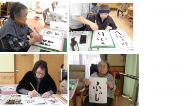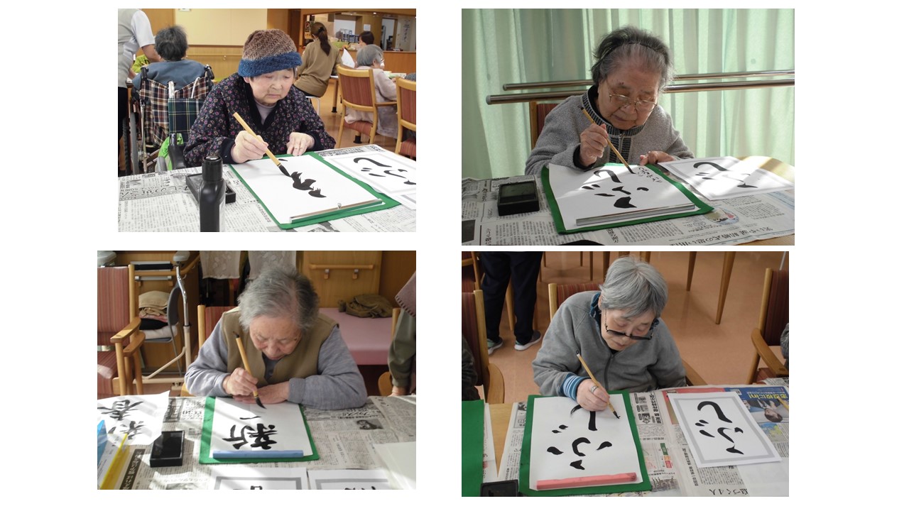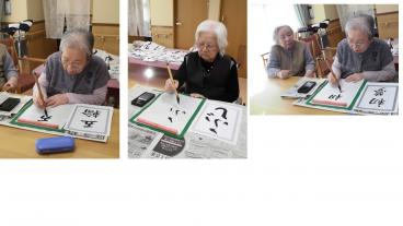 今日は2階の皆様で「大書初め大会」を行いました。