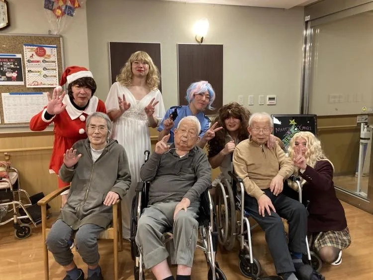 今年のクリスマス会はスタッフによる「ハンドベル」「女装コンテスト」。
