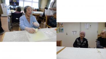 2階の3月の誕生会レクリエーションとして、「パンとコンソメスープ」を手作りしました。