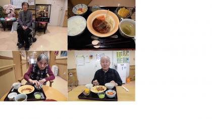 お待ちかねのお昼は、こどもの日にちなんでハンバーグ。お客様にも人気のメニューです。