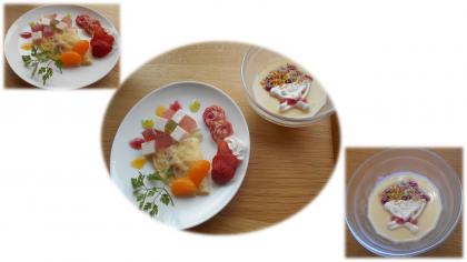 クレープとゼリー。ここにクッキーの赤いカーネーションが添えられていました。