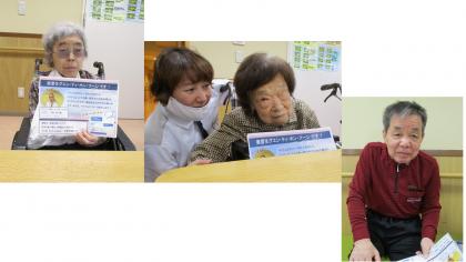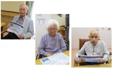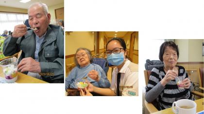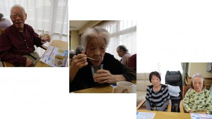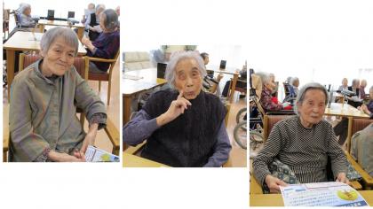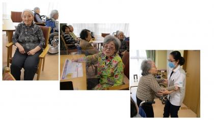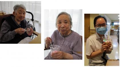 さて、2階の6月の誕生祝会は、フーンさんの紹介とフォトセッション(撮影会)を行いました。職員がにわかカメラマンとなり、皆様にカメラを向けていきます。フーンさんも一緒に「はいチーズ!」とても良い笑顔を撮らせていただきました。