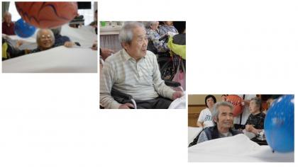 まずは、ラジオ体操で準備運動。その後「風船バレー」・「輪送りゲーム」と大人気の種目が続きます。