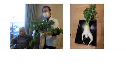 今回は芋汁を作ります。使用するのは施設内で育てた大根です。