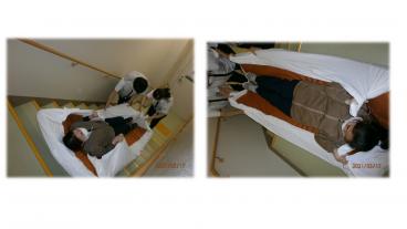 最後は職員によるマットレスを使用した避難訓練です。いざという時には階段を使用することも想定されます。