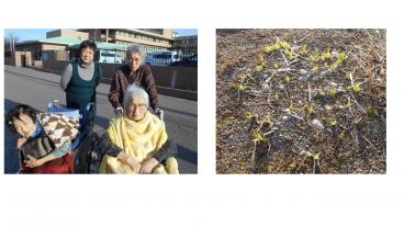 施設の外を散策したり、雪解後の花壇より芽をだした植物に、皆様春の訪れを感じられていました。