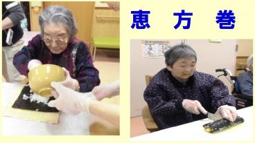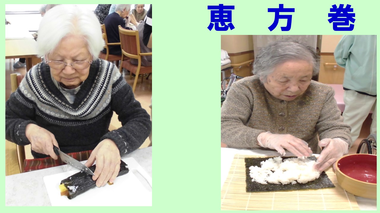 優しい鬼になったところで、4日には皆さんで調理レクリエーションとして「恵方巻」を作りました~