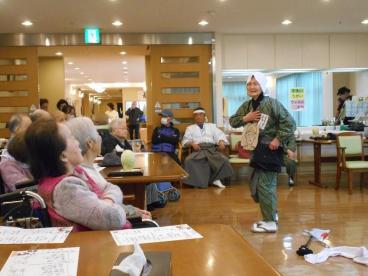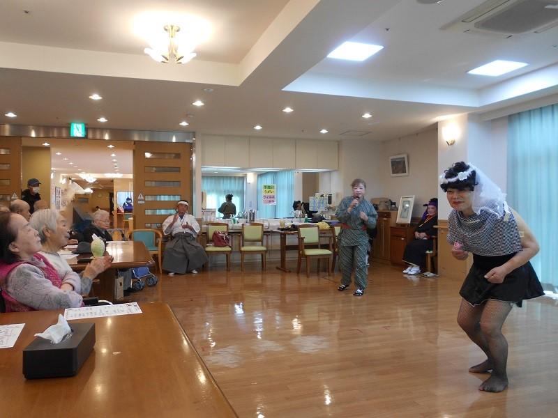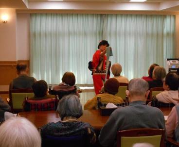 その名も"京友会ボランティア”様。見ているだけで自然と体が動いてしまうような迫力のある踊り、思わずクスッと笑ってしまう歌手に扮しての歌ものまね、とても楽しい時間を過ごさせていただきました。