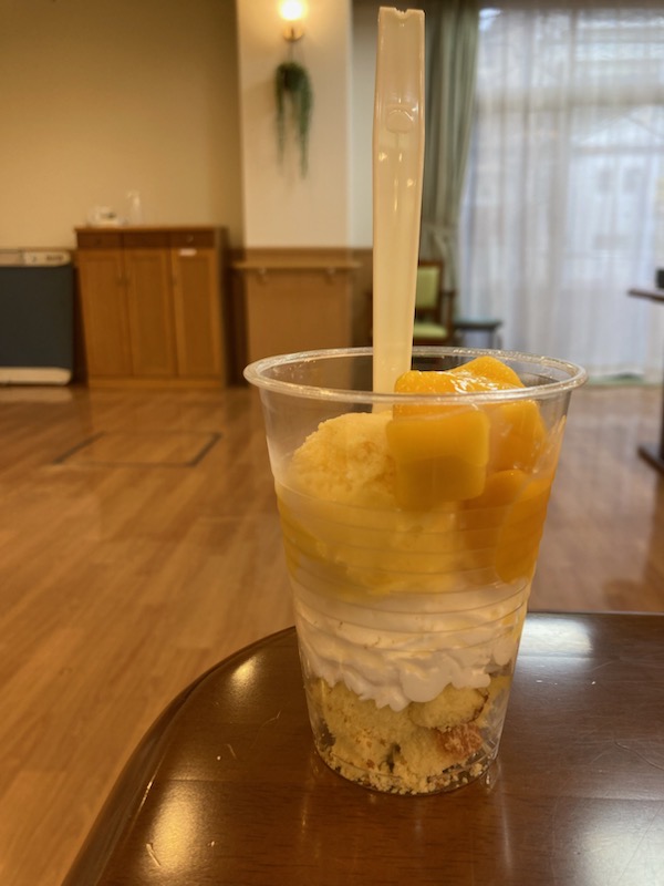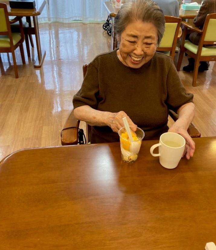 私自身食べることが大好きで食べ歩きや新しいお店発掘を日々しているのですが、小さな頃から大好きだったミキサーでその場で作ってくれるミックスジュース屋さんでミックスジュースを飲んでいる時にこの美味しさを施設のお客様にも提供することはでいないのかな?とふと思いたちミール職員、施設長に相談しお店屋さん第1回目にミックスジュース屋さんを実施致しました。