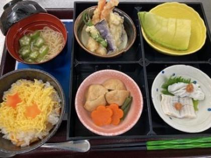 7月7日に毎月恒例のイベント食として、七夕松花堂弁当を提供致しました。