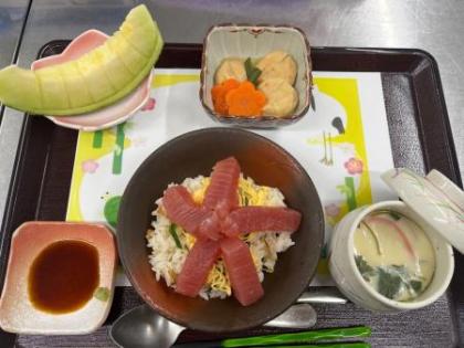 人気のあるマグロのちらし寿司と、メロンをメニューに取り入れた内容で提供致しました。
