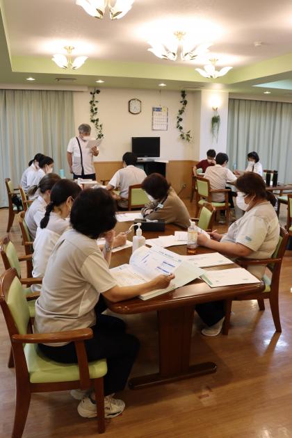 この研修は法定研修となり、スタッフのスキルアップと、定期的に開催する事で振り返りと気付きをもたらすことが主な目的です。