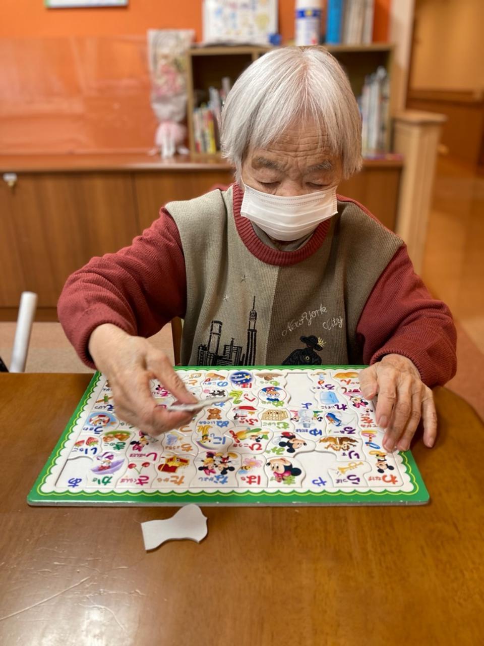 こんにちは。介護副主任の佐藤です。今回はレクリエーションで行っているパズルの様子をお伝えしたいと思います。