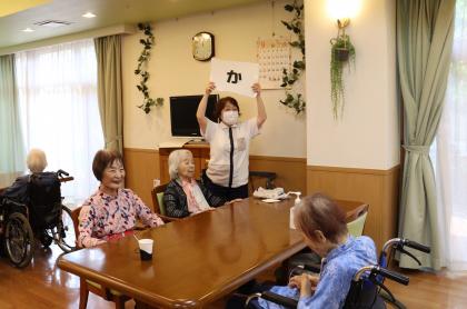 『「か」から始まる言葉わかる人!』と梅村さんが声をあげると、お客様からさまざまな答えがあがります。