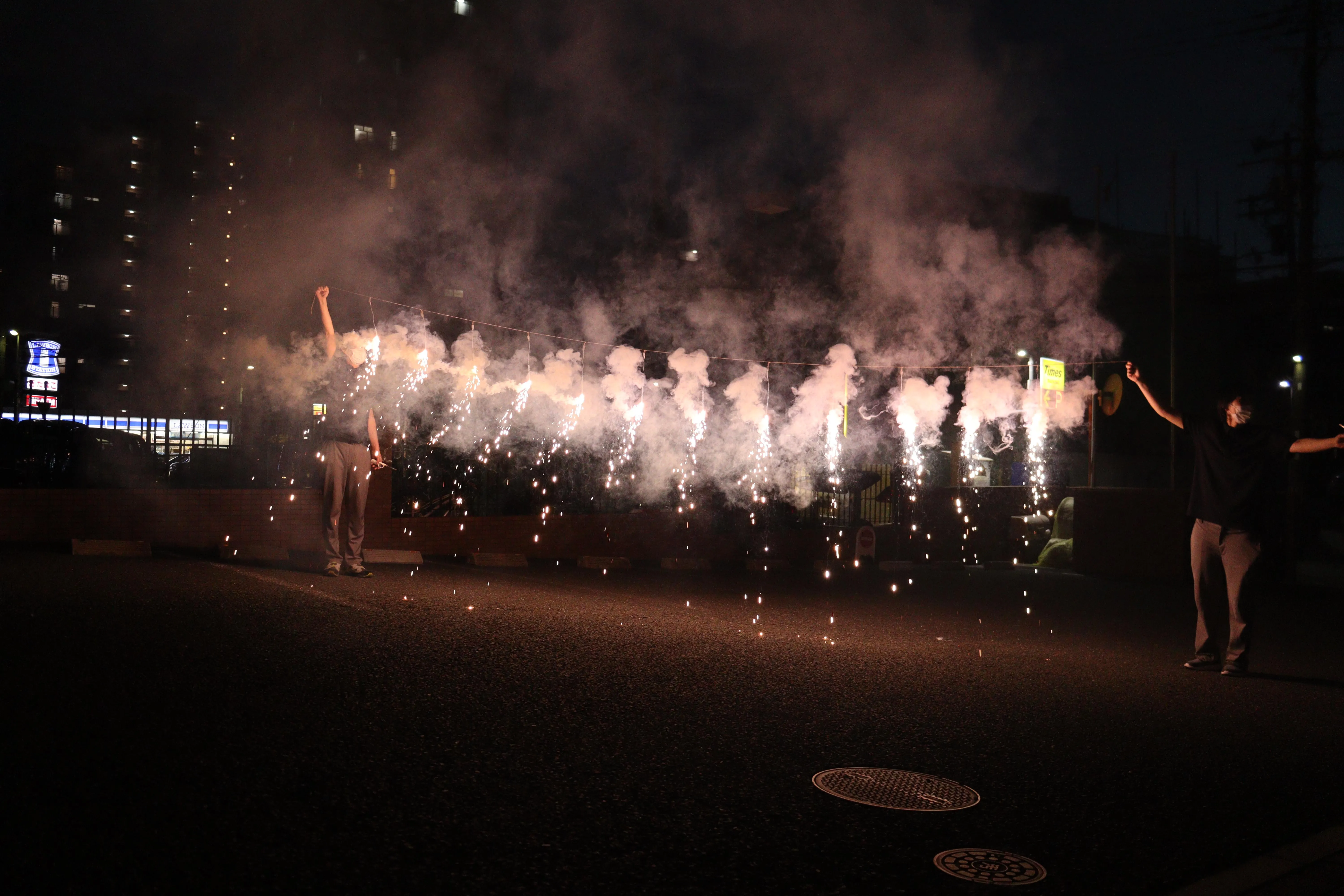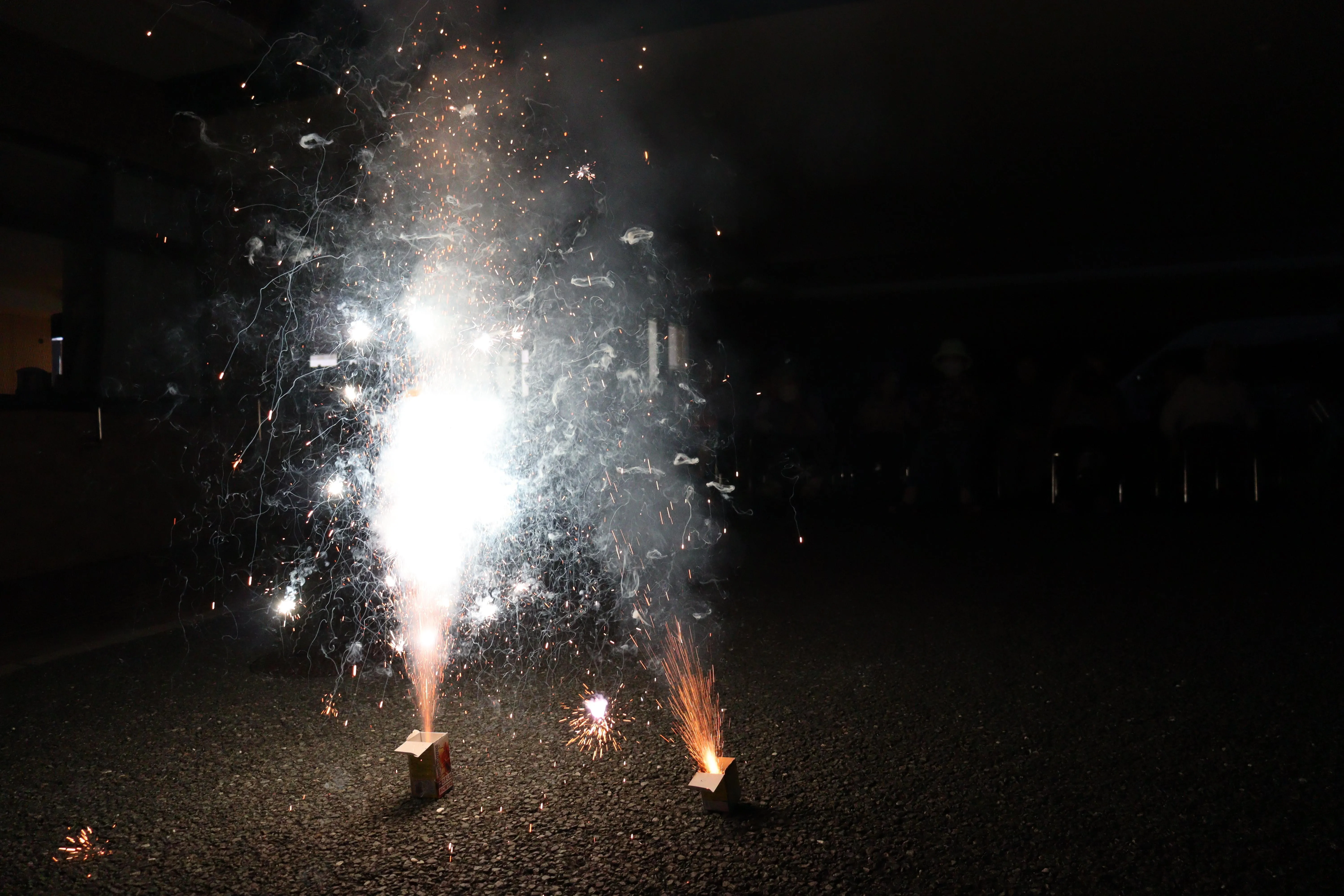 出店でお楽しみいただいた後は、日が暮れてから花火を観て頂きました。風向きが心配でしたが、今年はいい風向きでした。迫力がありとても綺麗でした。