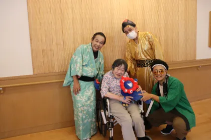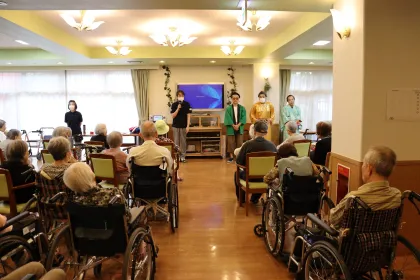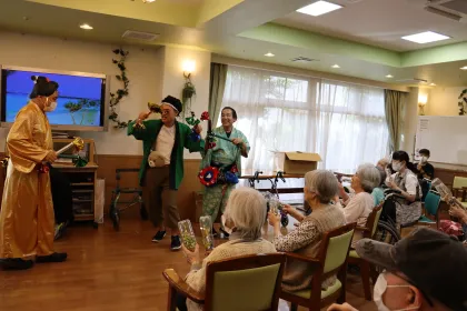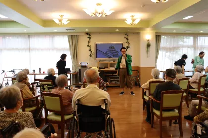 今年の敬老会は皆さまに笑顔をお届けしたく、ゲストをお呼びいたしました。さて皆さま、どなたかご存じでしょうか?