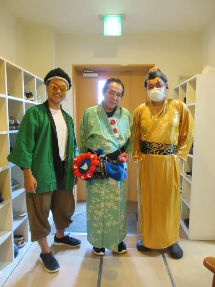 向かって右からマツケンさん、三波春夫さん、吉幾三さんに扮したスタッフです。クオリティーはすごく高い!!今年は演奏で盛り上がって頂きました!!