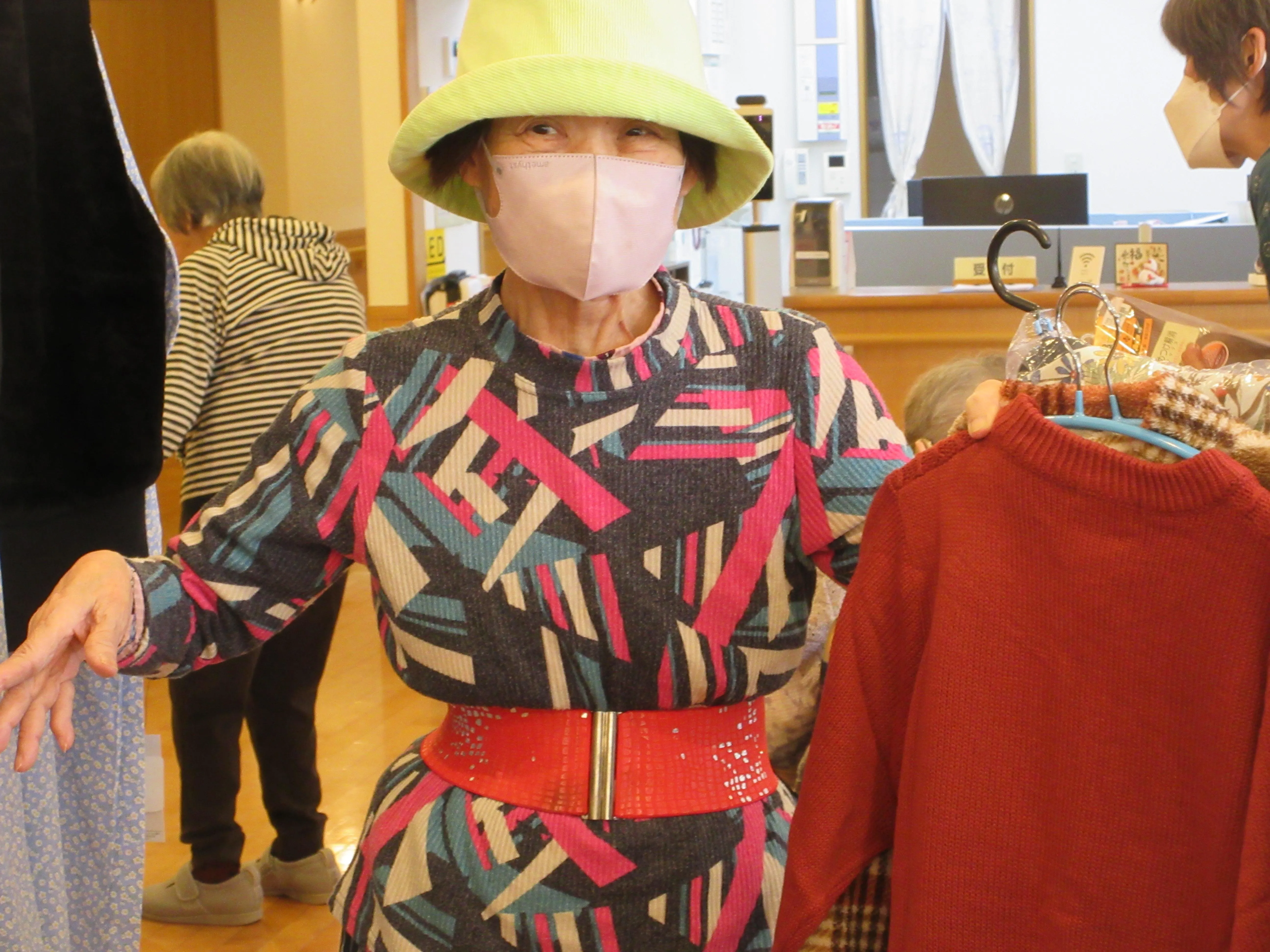 お洋服を選ばれた後は、お菓子など物産をご覧になっていました。「はなより団子」ならず「お洋服よりお菓子」ですね。お菓子を楽しみに来られたお客さまもいらっしゃいます。買い物中のお客様の笑顔が、とても良かったです。
