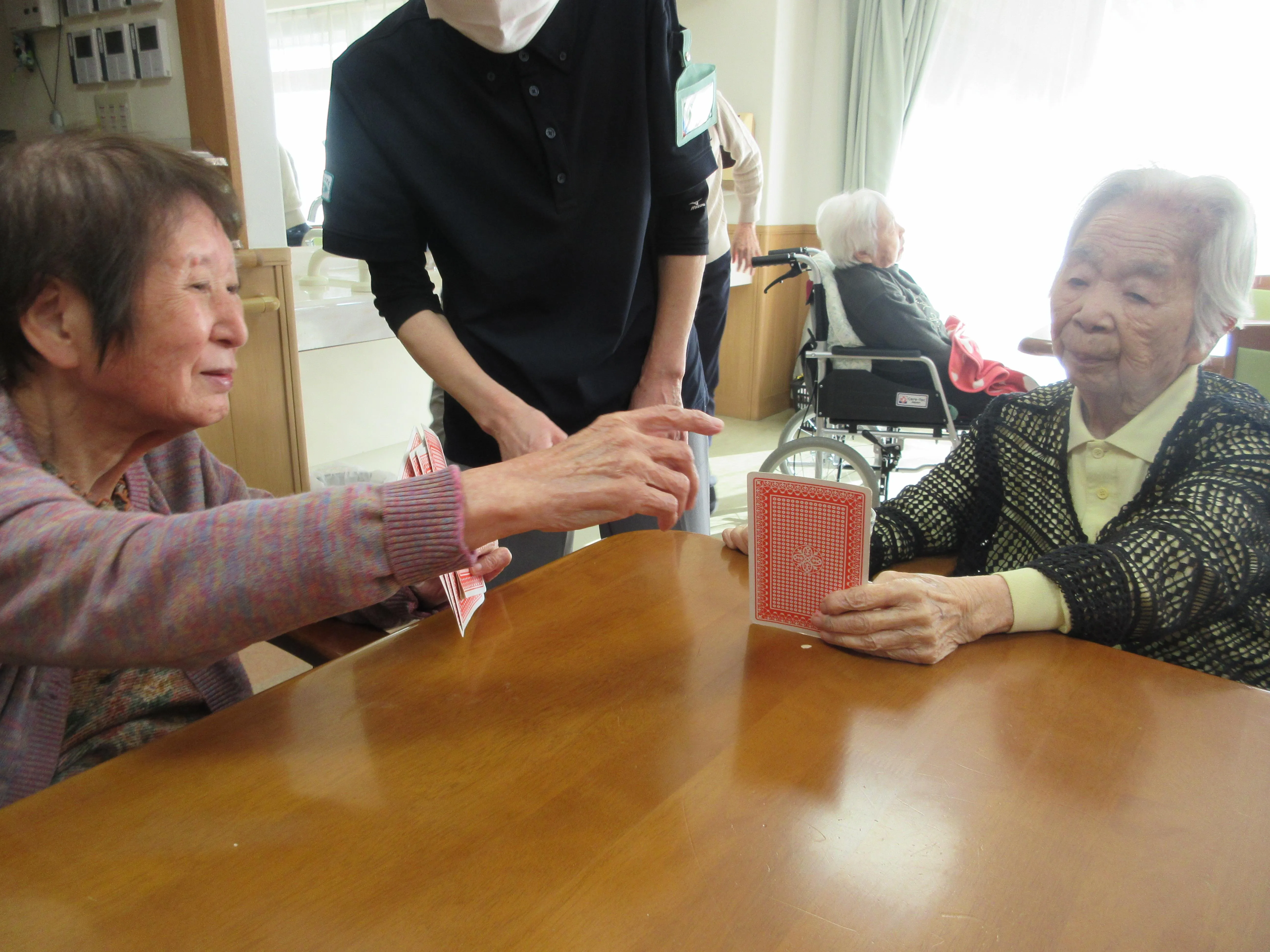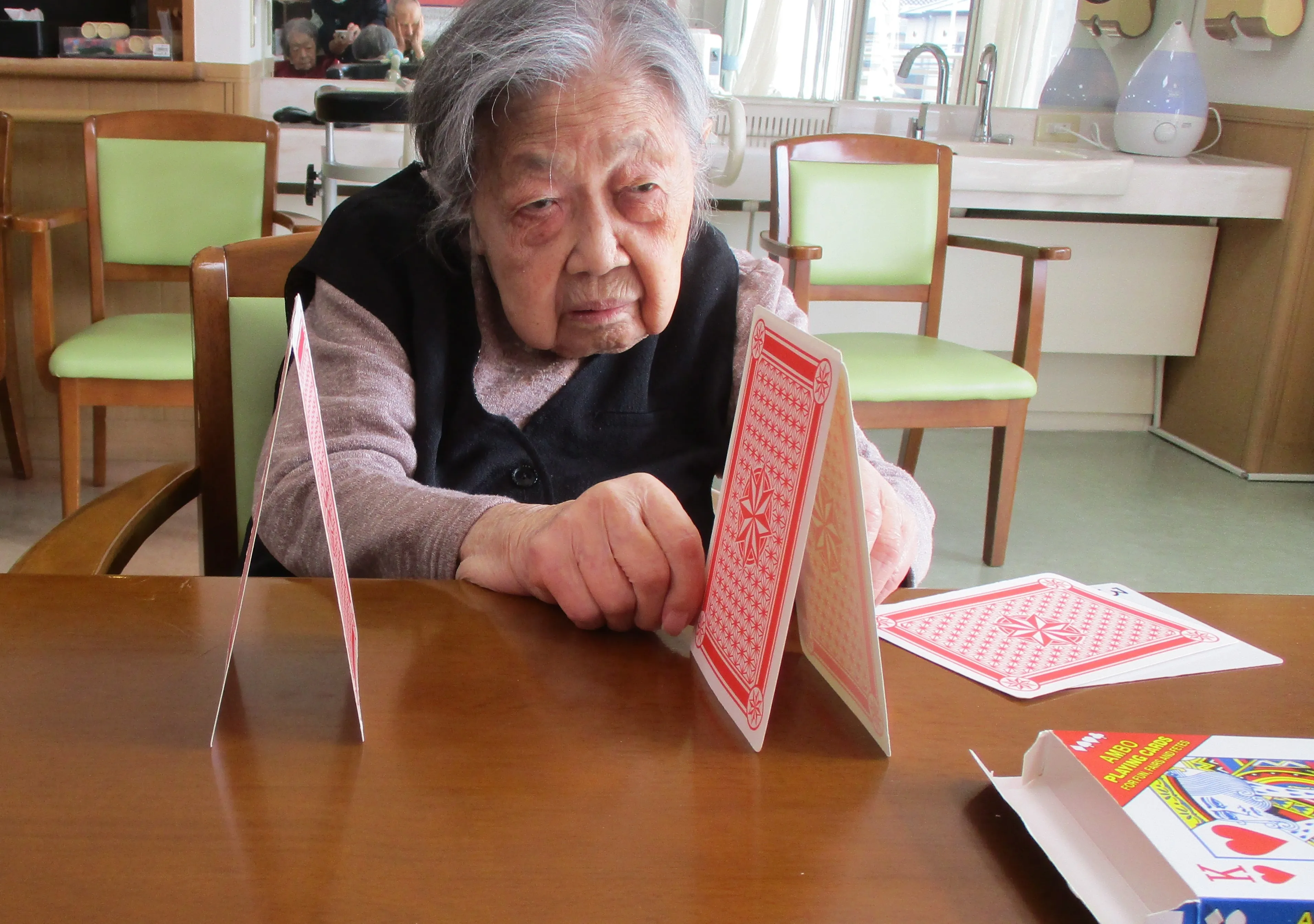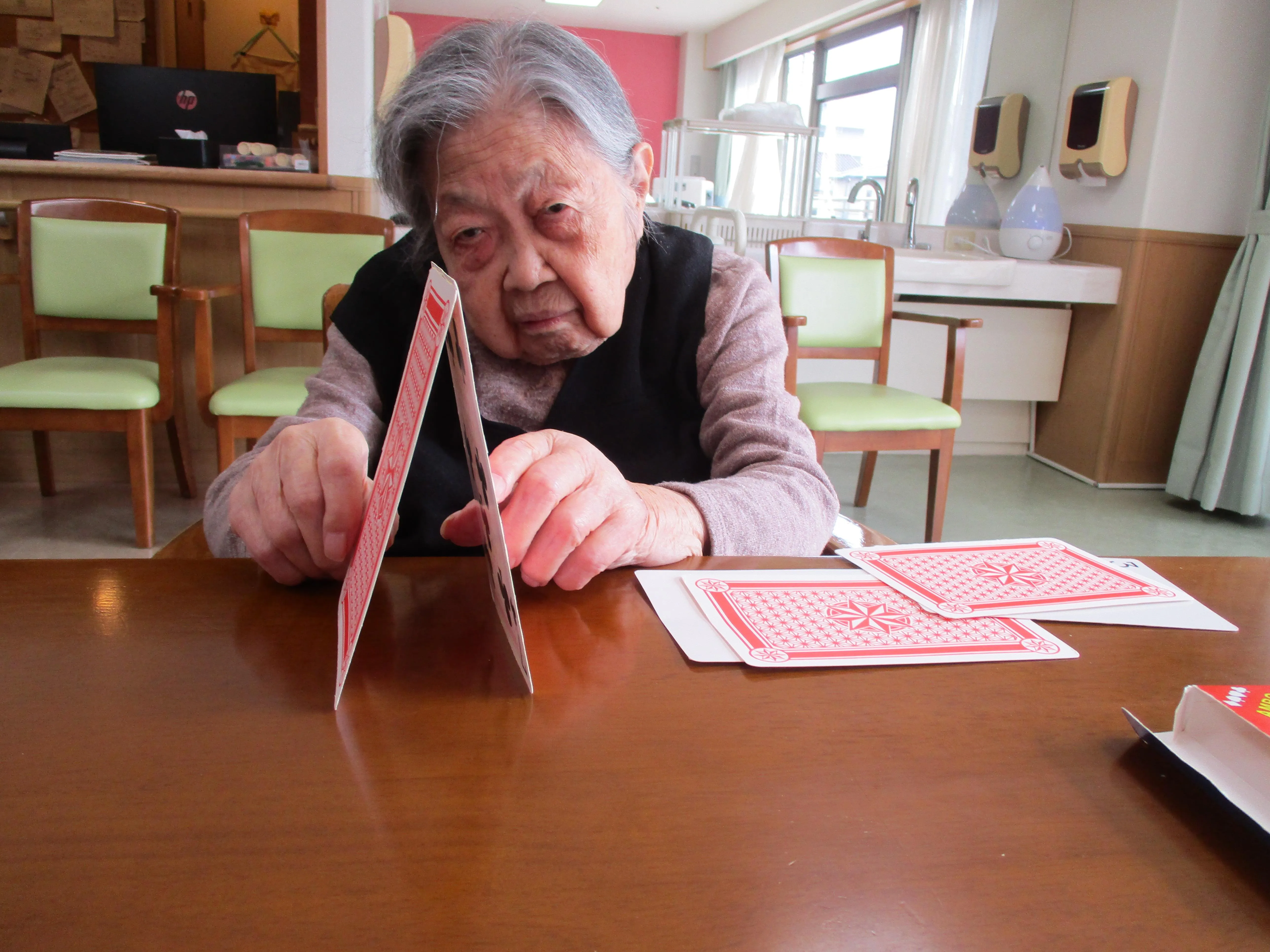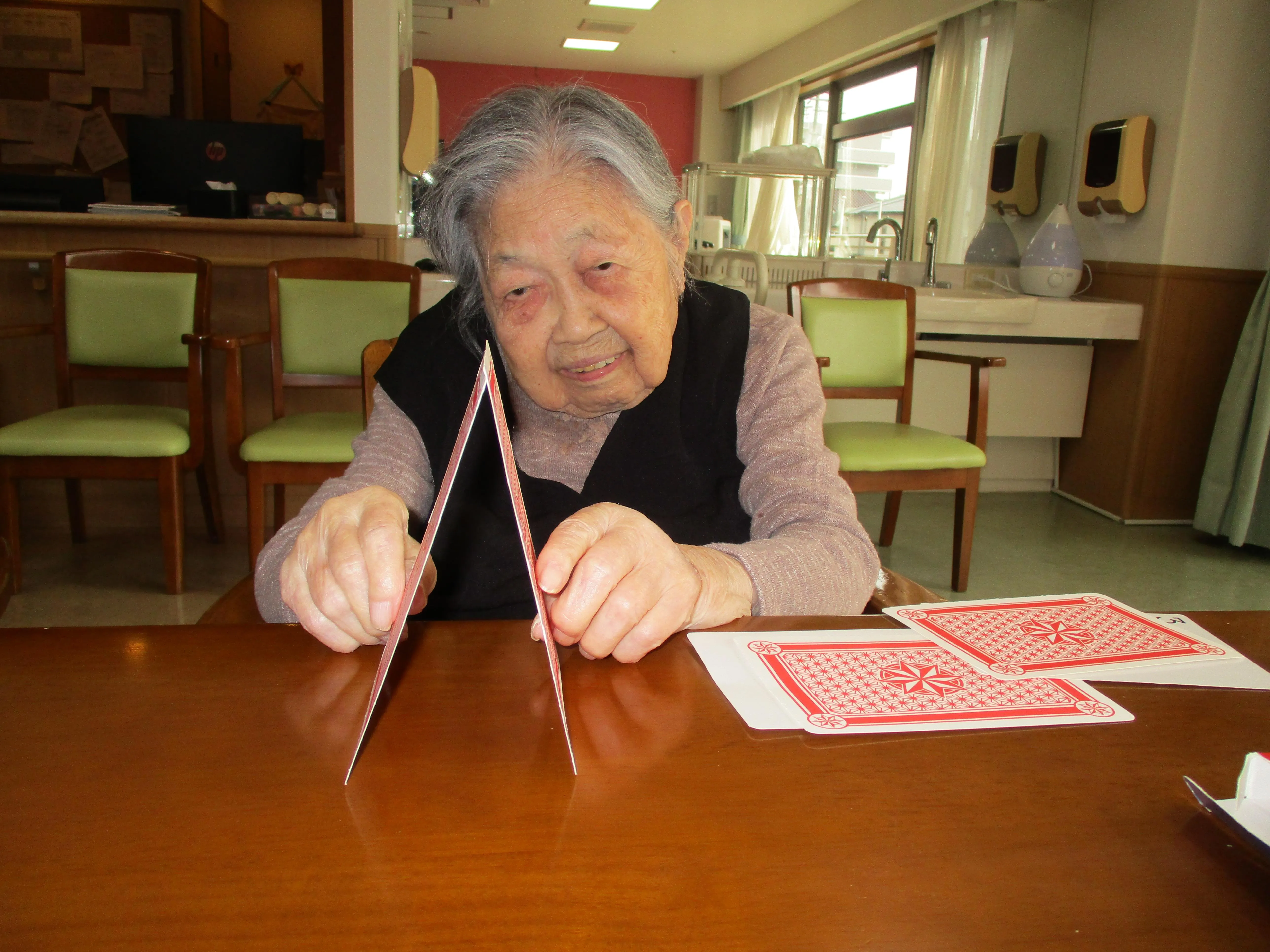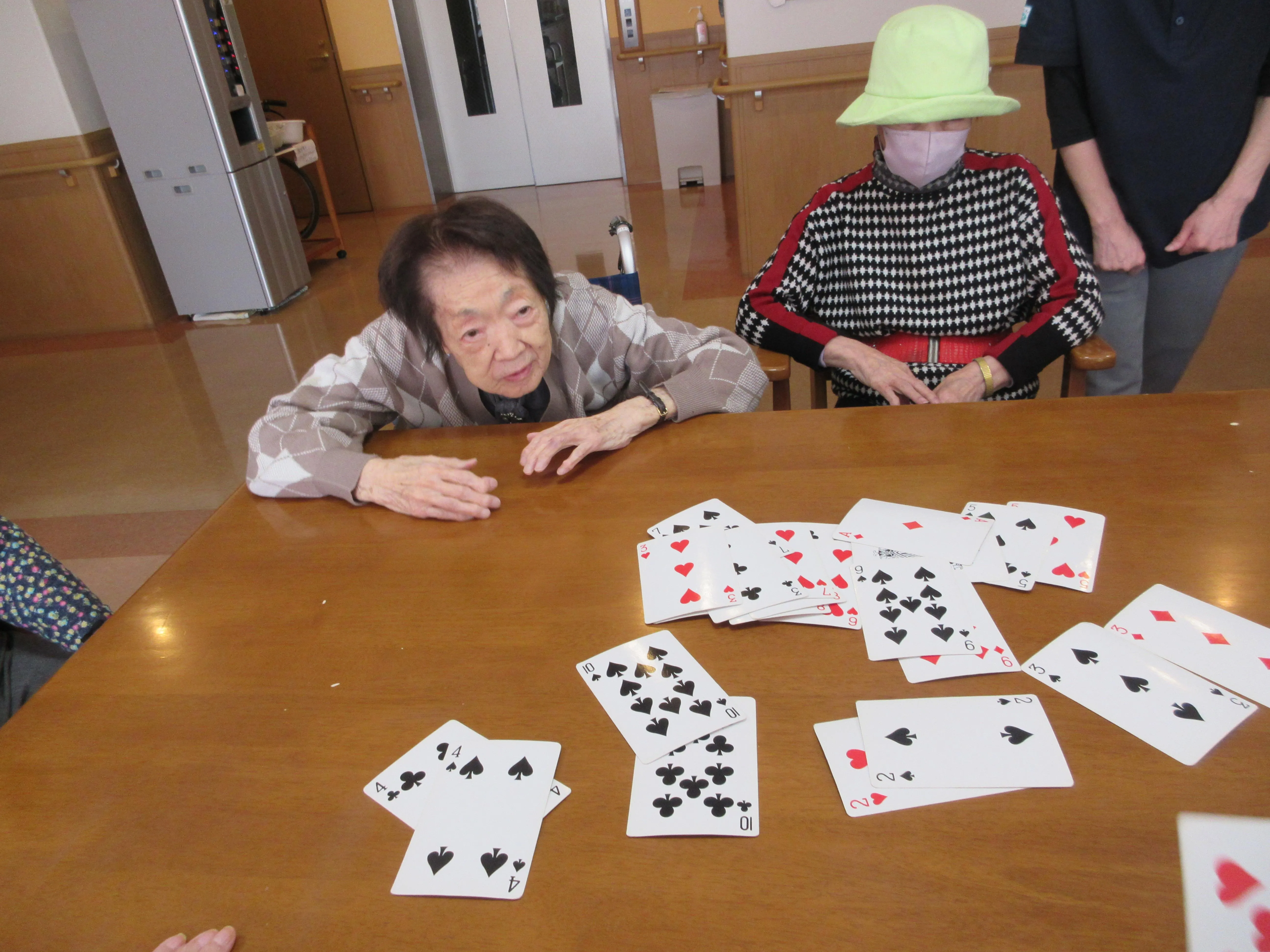 まだまだ集中力はご健在で、私もよい勉強になりました。トランプの他にも楽しめるレクリエーションを、これからもどんどん見つけていきたいと思います。