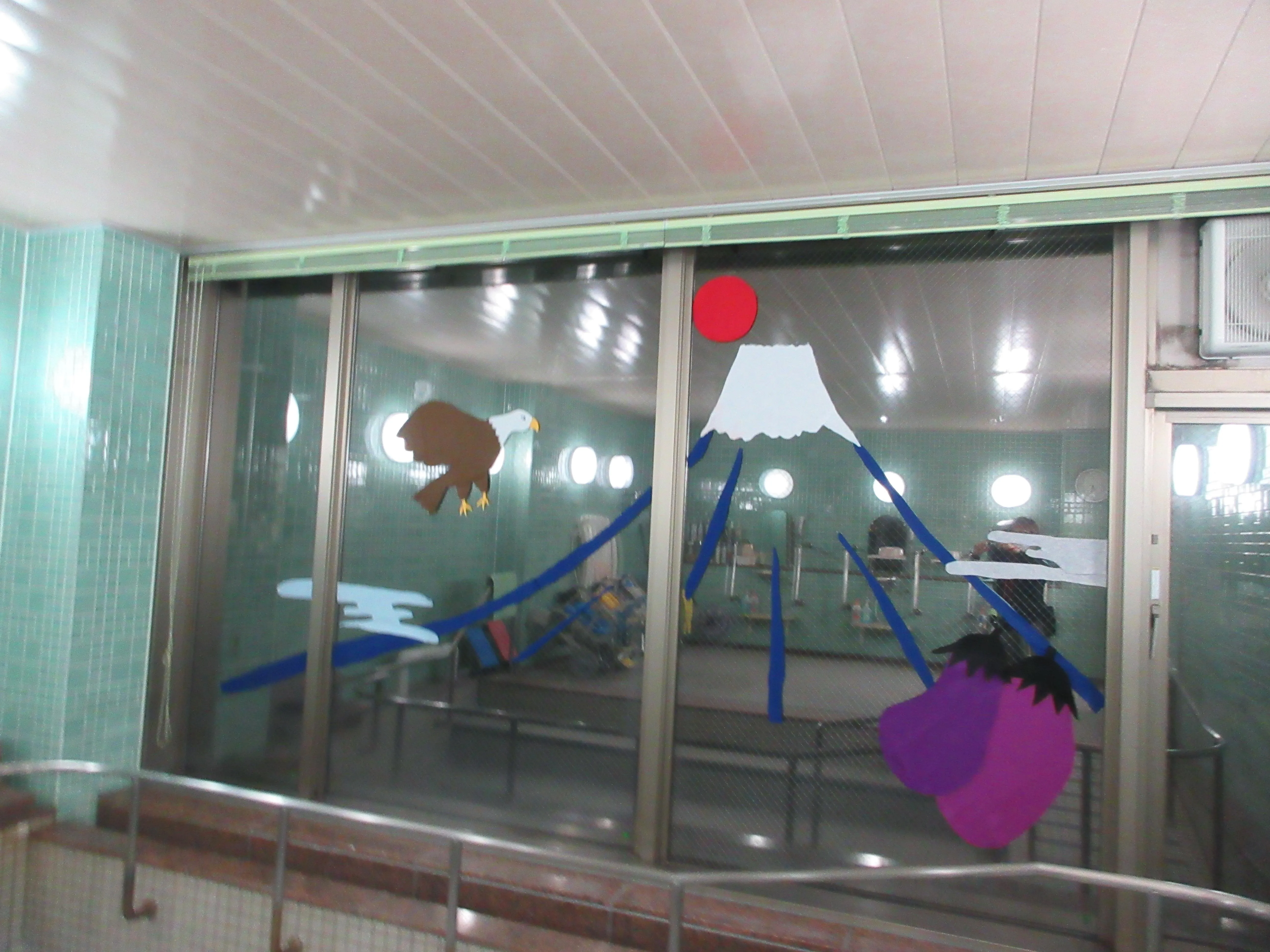 大浴場の富士山に鷹となすびを追加致し、一富士二鷹三茄子のお風呂で、お客様をお出迎え致しました。
