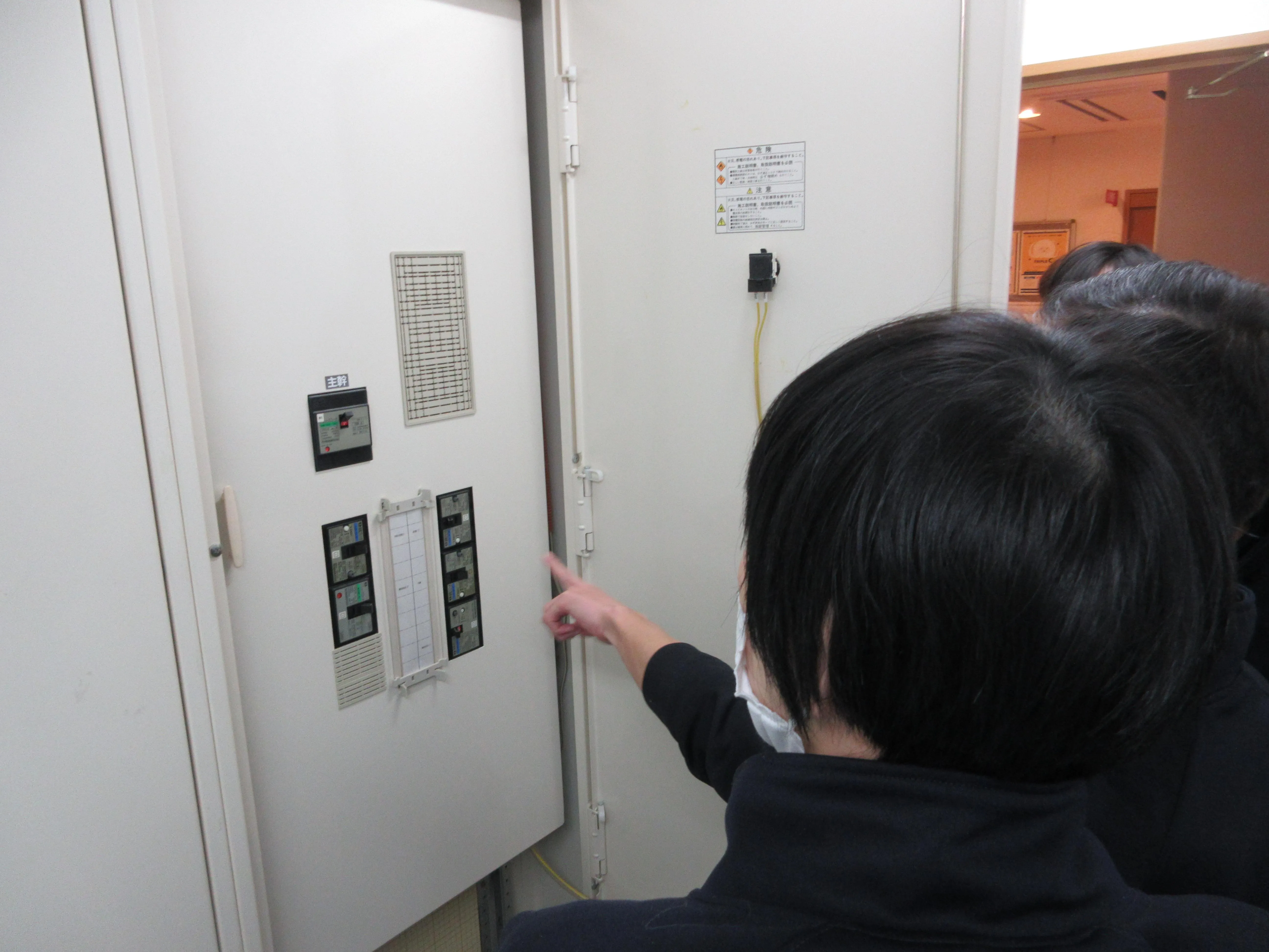 今回の『災害時対応』の研修の最後は、施設のブレーカーの場所を実際に確認しました。