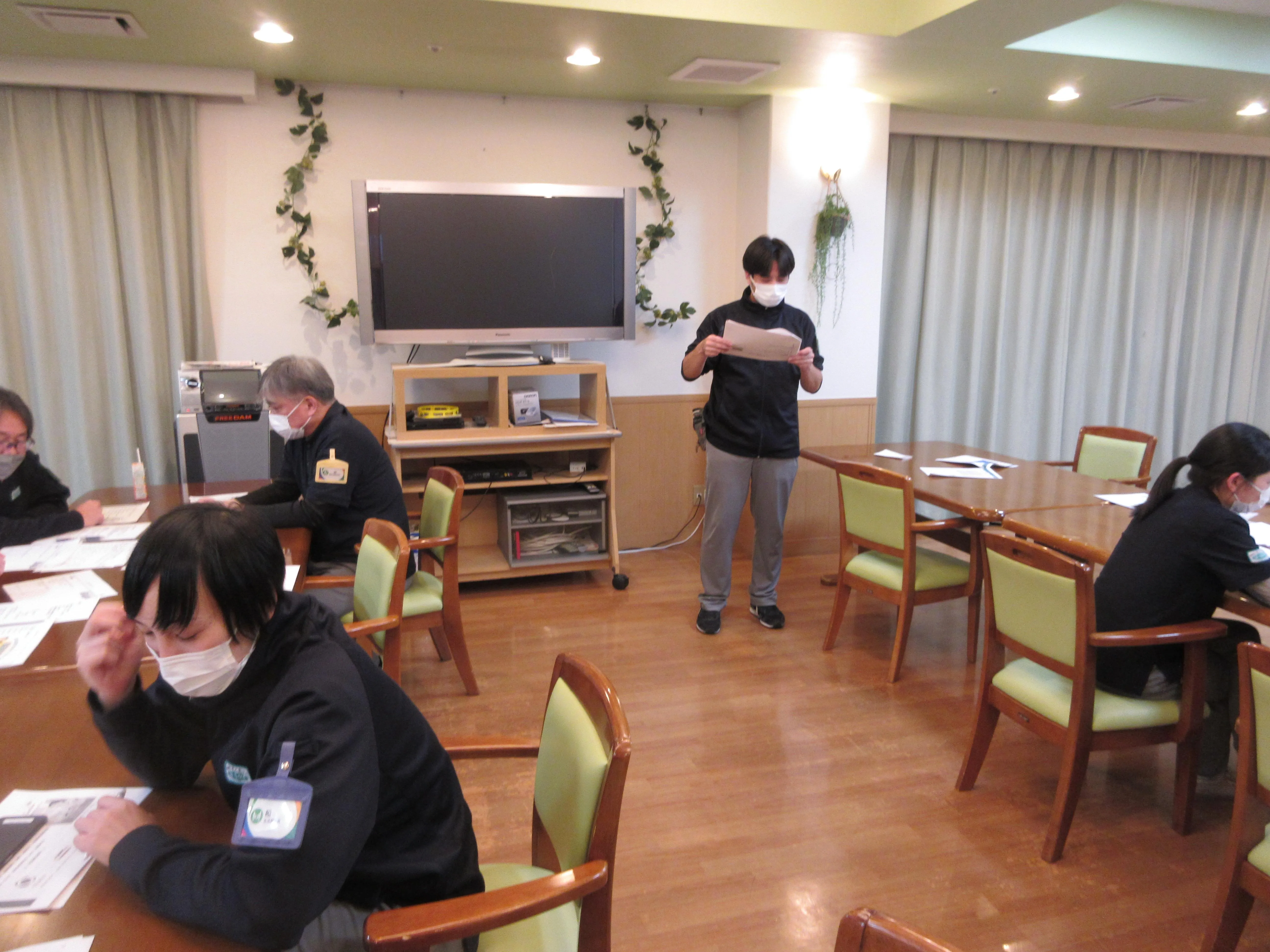 そのあとは、機能訓練士による『ミニ講座』、続いて、法定研修となり今回は『BCP災害時対応』でした。
