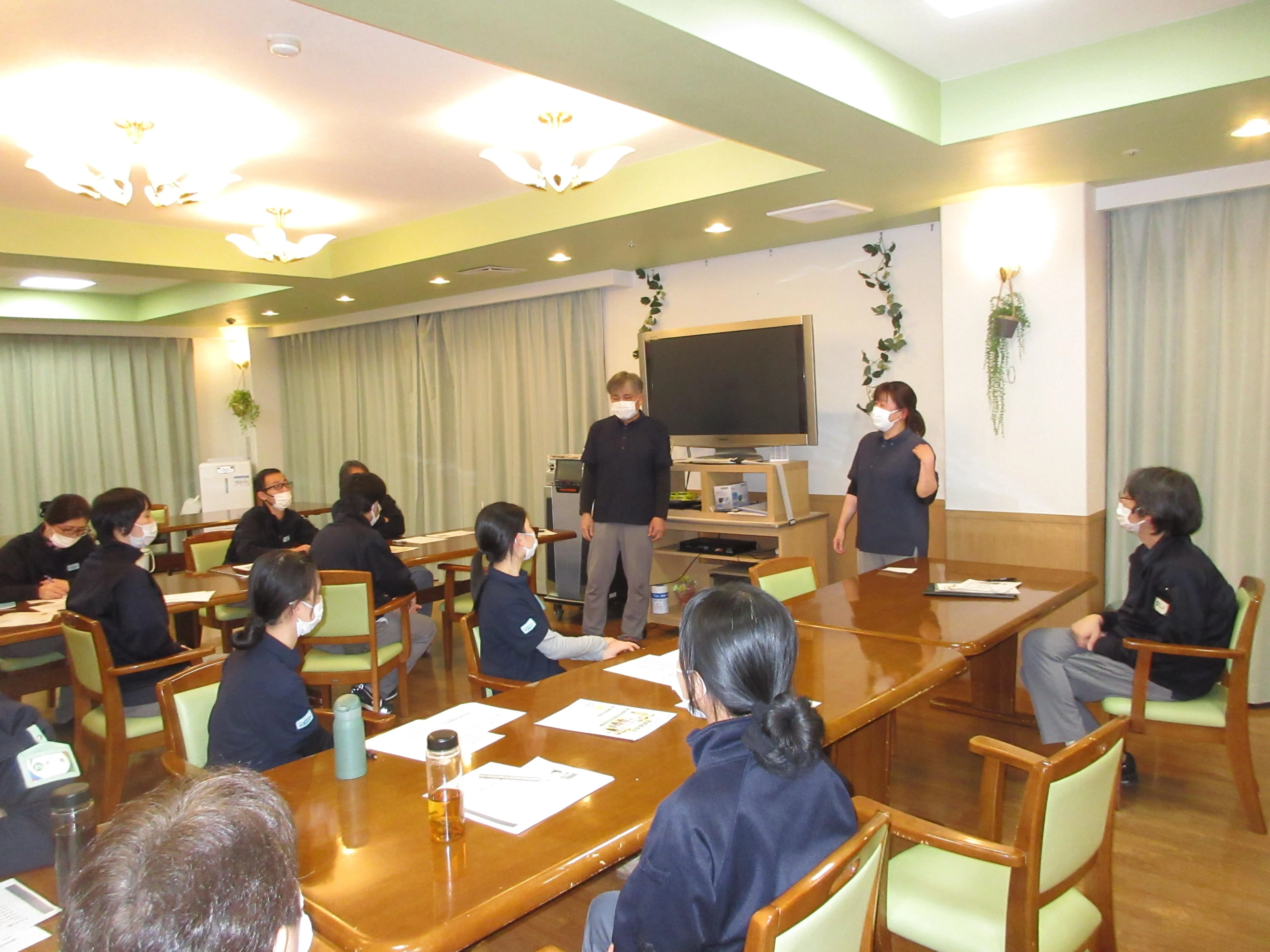 全体会議の中の機能訓練ミニ講座の風景です。