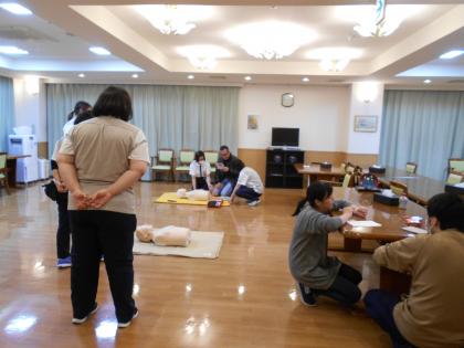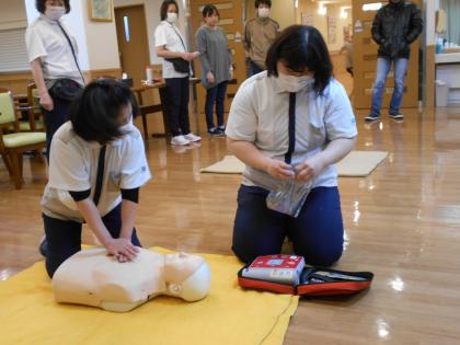 介護サービス事業所として、一次救命措置は必須の知識ではございますが、いざという時に混乱してしまわないように、定期的な訓練をおこなっています。