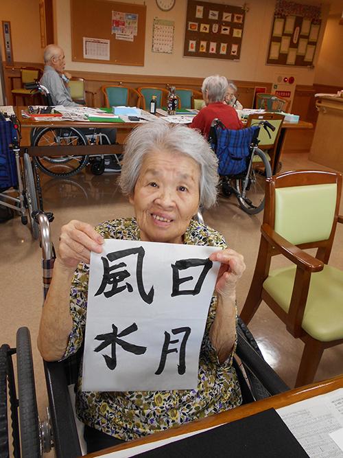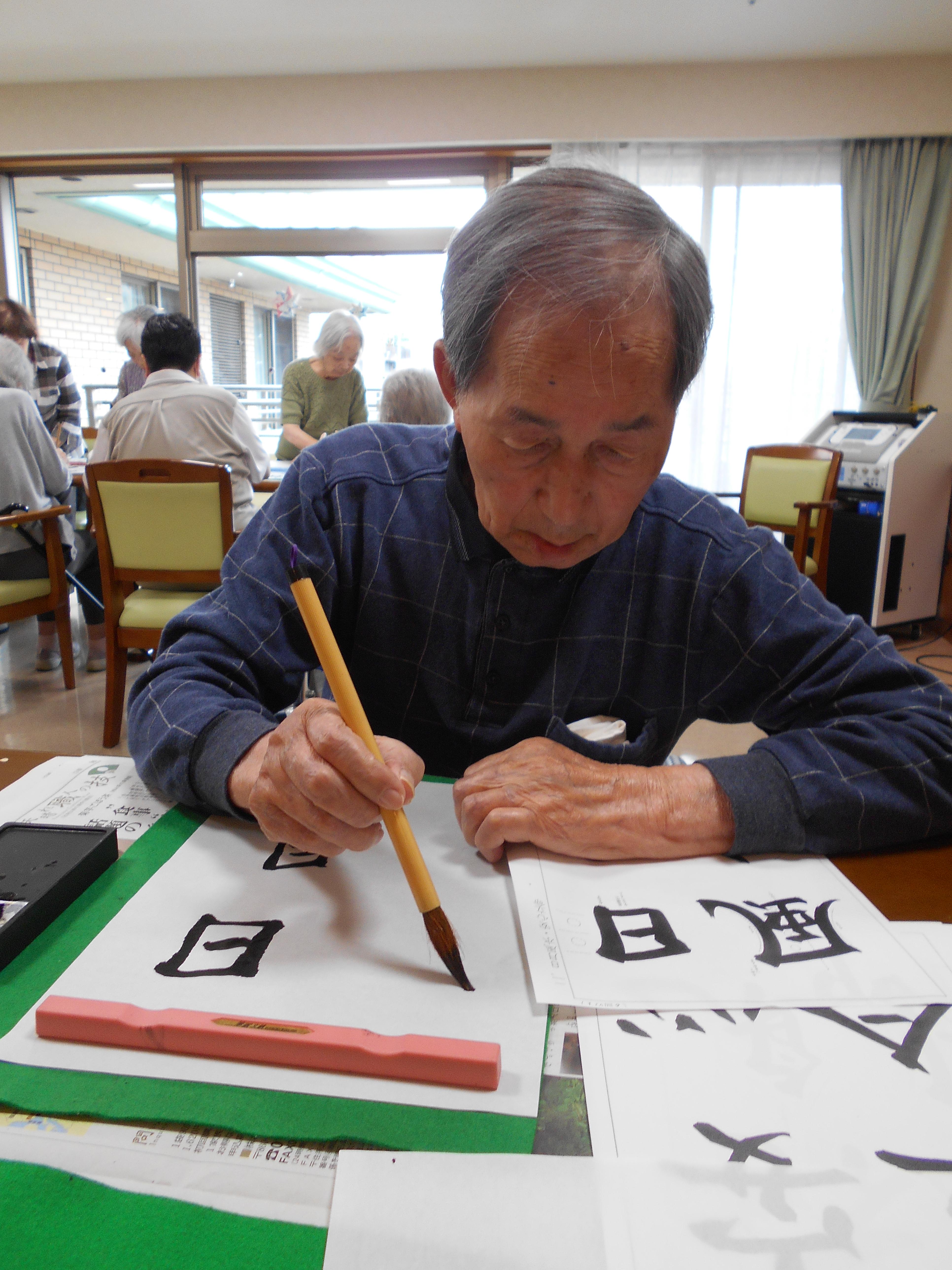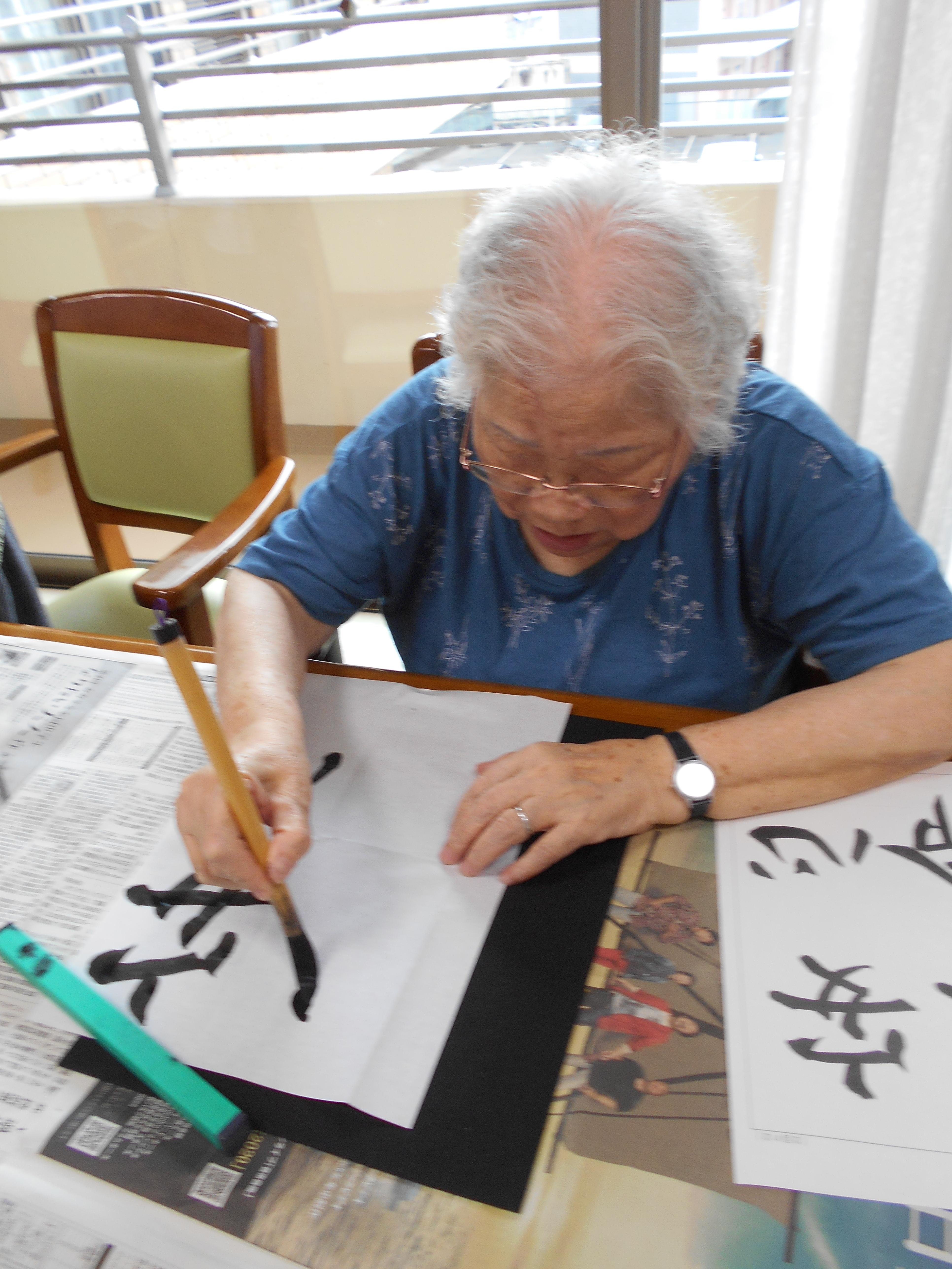 今回は定番の『習字レクリエーション』のご様子をお届けいたします。