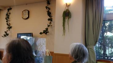これまでは絵画中心でしたが、緑葉の囲まれるようなアイテムを飾り、お客様をお迎えいたしました。