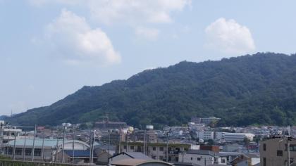 屋上広場で大きな鯉のぼりを背に、また、その後ろの雄大な生駒山系の山々を背景に、お客様の写真を撮りました。