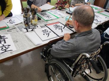 それぞれの想い、経験された出来事を思い浮かべながら、真剣に筆、半紙と向かい合われます。