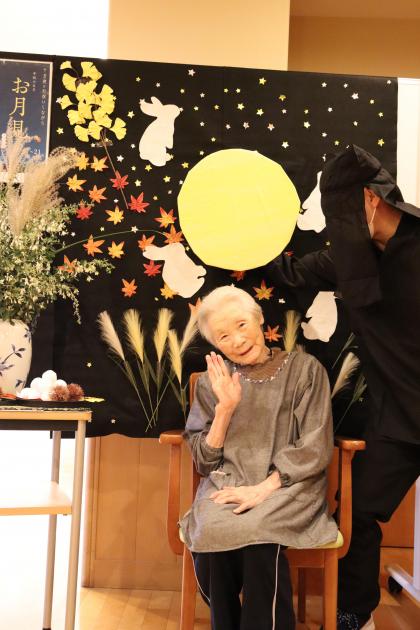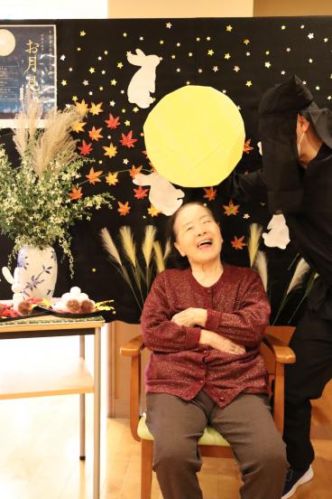管理者も黒子に扮し、月を掲げ楽しんでいます。