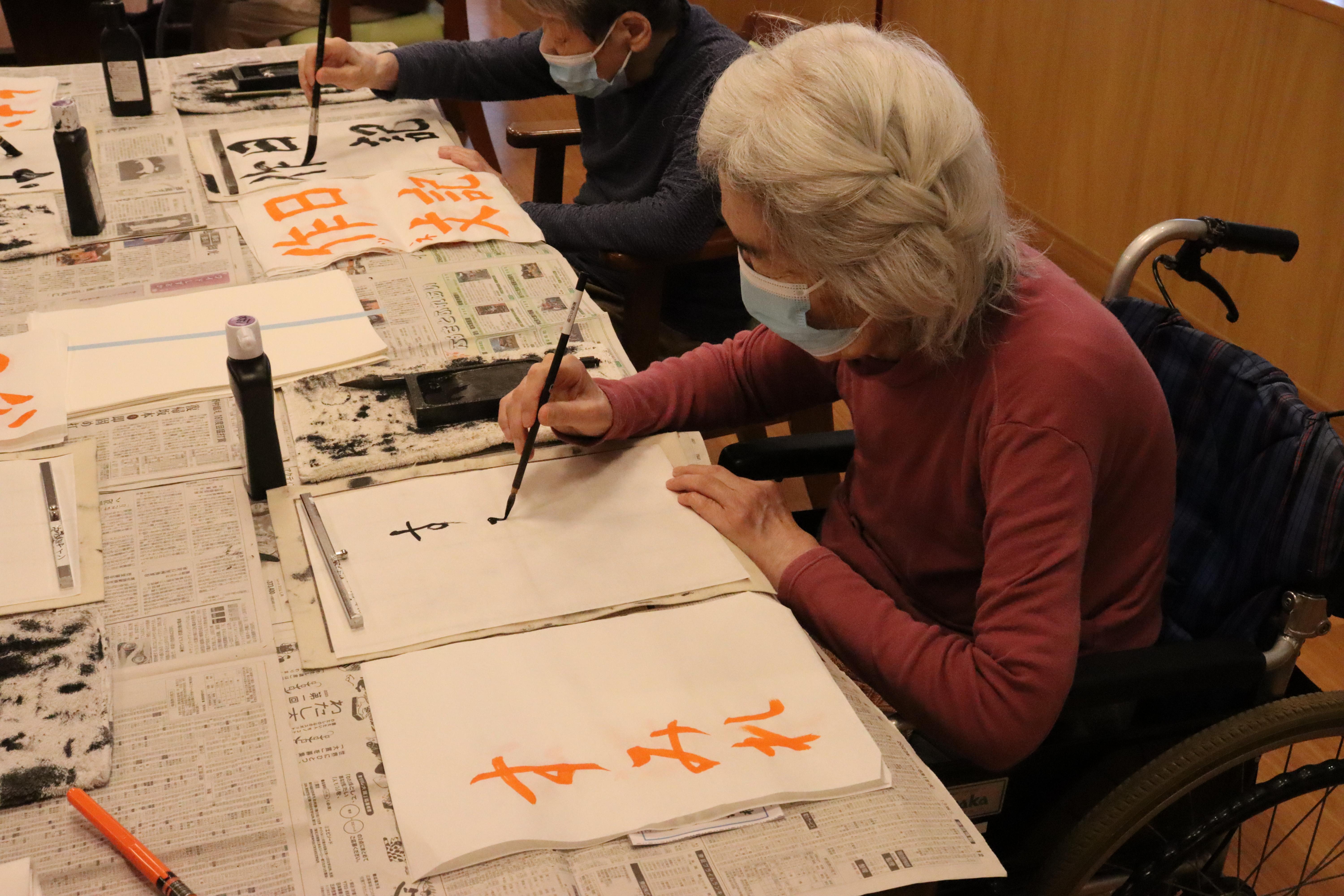 月2回、書道教室を行っています。ご希望者の方が参加をしています。入居者の方は見本を見ながら書道を楽しんでいます。