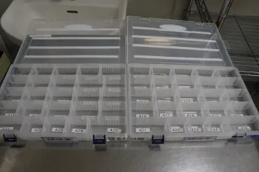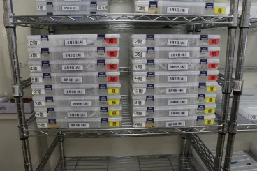 処方された薬は、薬局から服薬ケースに配薬された状態で届きます。安全に内服して頂けるように、こちらで再度確認して配薬しています。