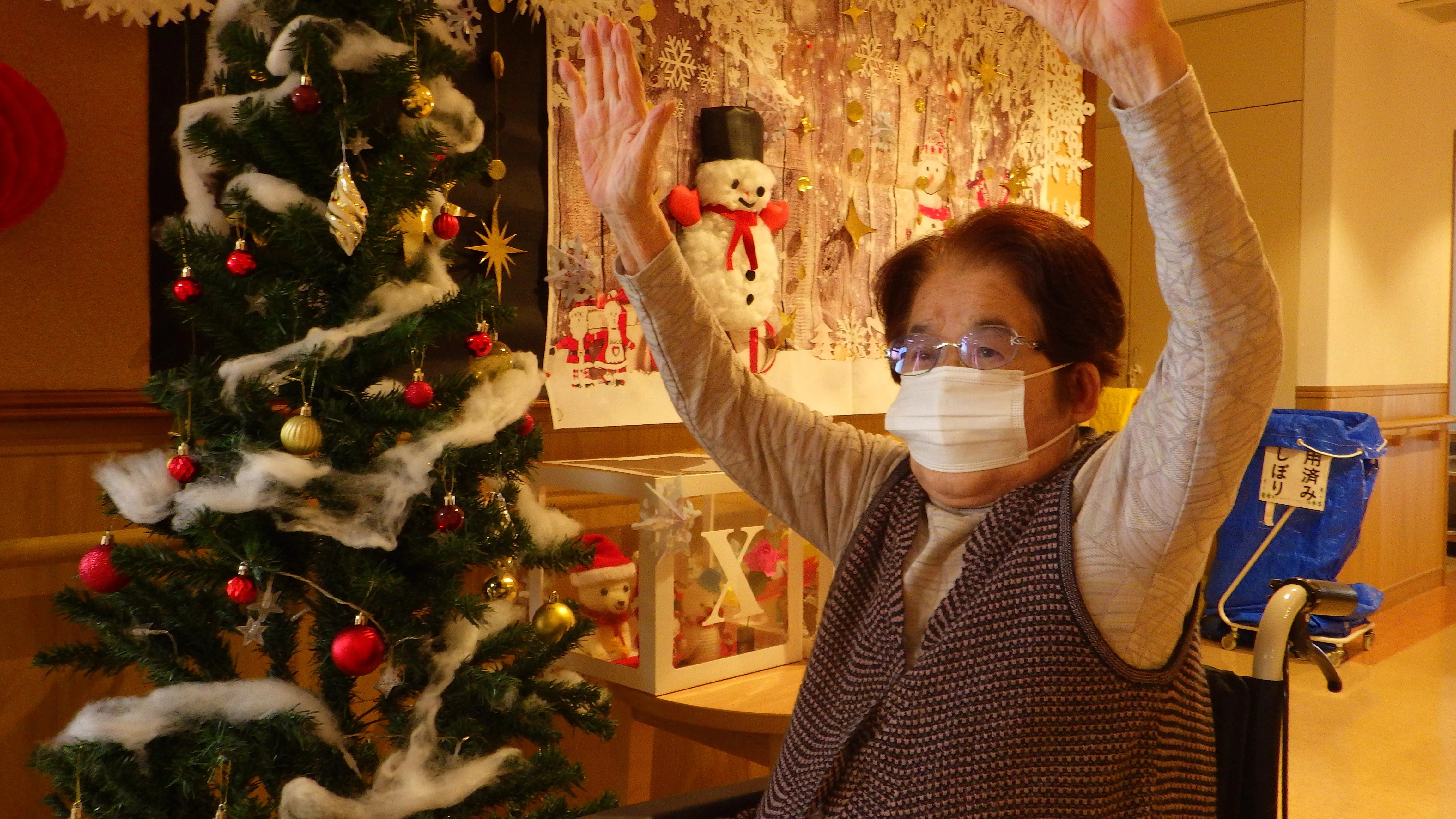 フロアで手足の曲げ伸ばしや、立ち上がりの練習を行っている様子です。お客様の状態に合わせて、個別や集団で対応しております。日々の運動を通して、機能維持や意欲の向上に繋げていければと思います。