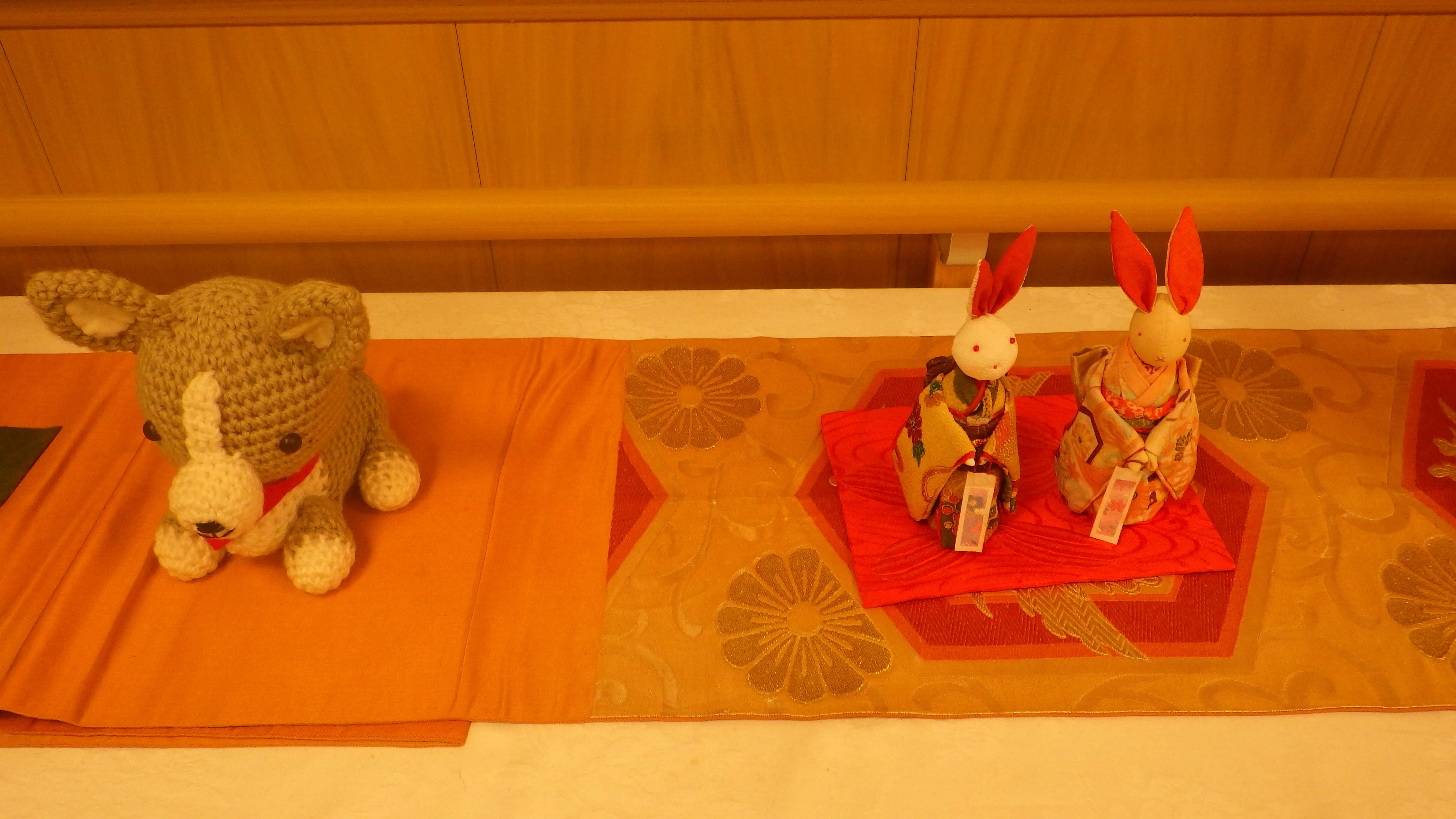 ツクイ・サンシャイン富士ではエレベーター前のホールにご利用のお客様が日々お作りになられました作品が展示しております、どの作品も手が込んでおりとっても素敵です。とても手先が器用な方で、お部屋に伺う都度作品が増えております。私達スタッフも作品を見る都度、気持ちが和やかになります。是非当施設にお越しの際には作品をご覧くださいませ。
