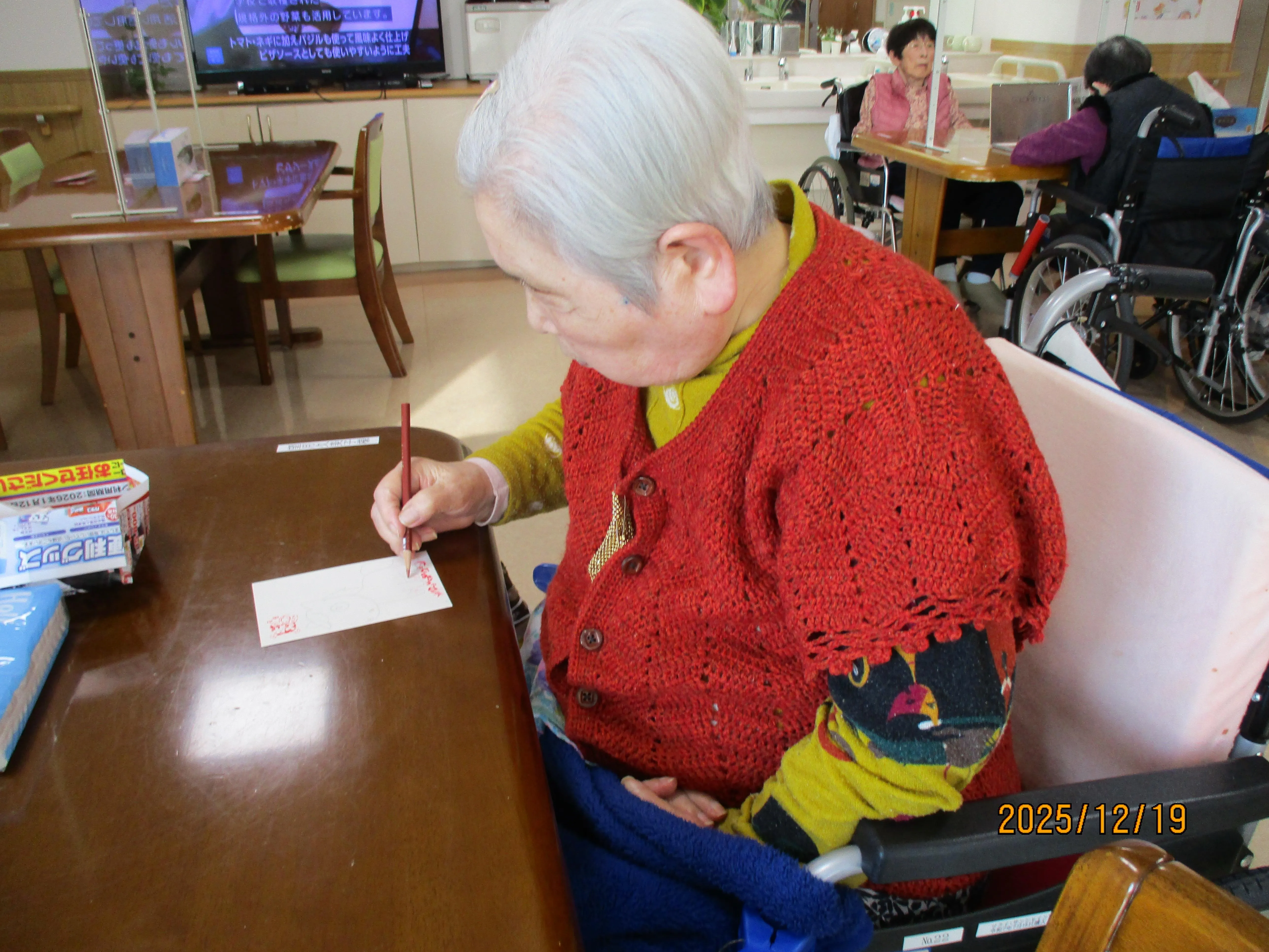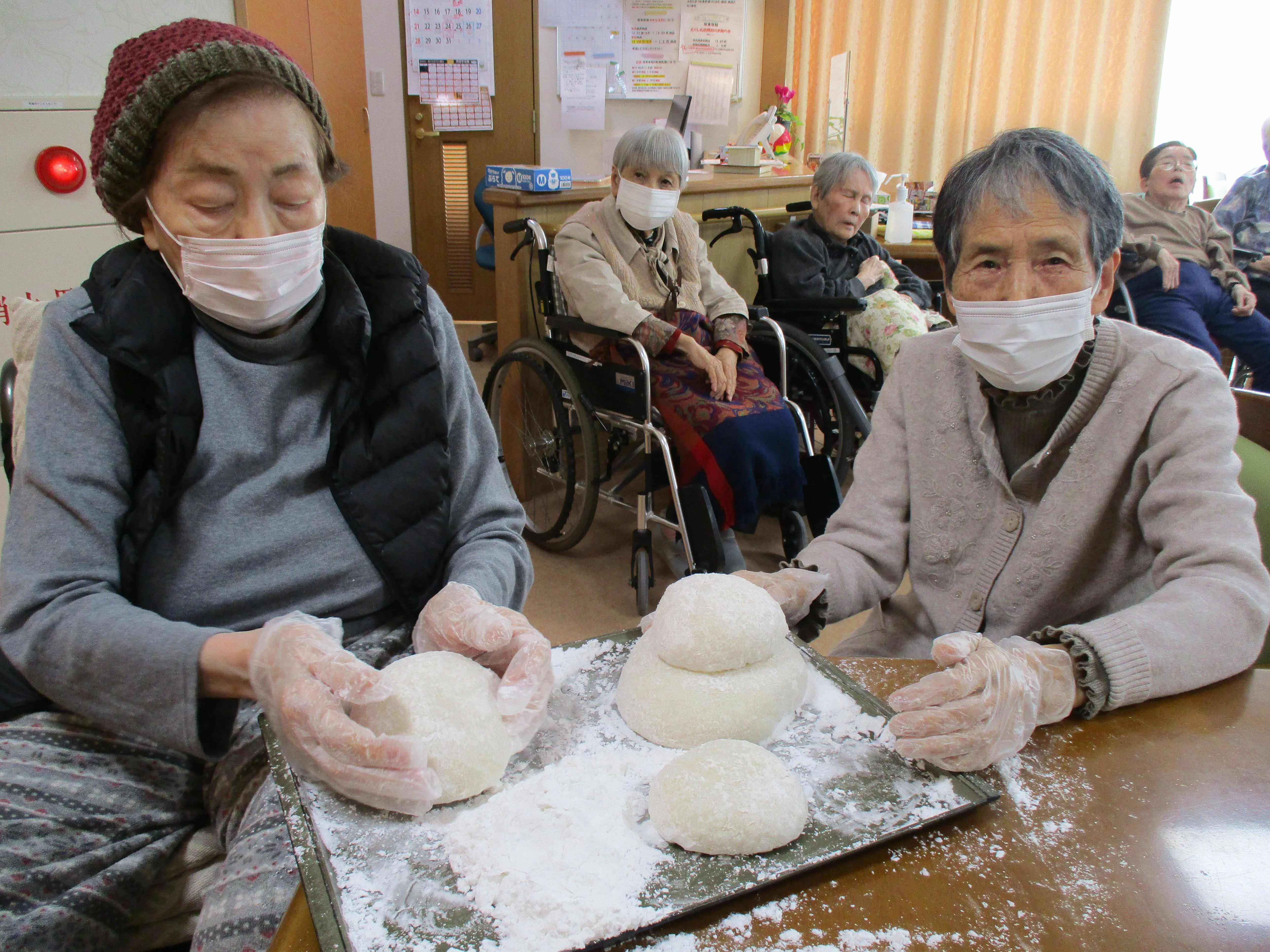 年末には心を込めて書いた年賀状。皆で作った鏡餅。