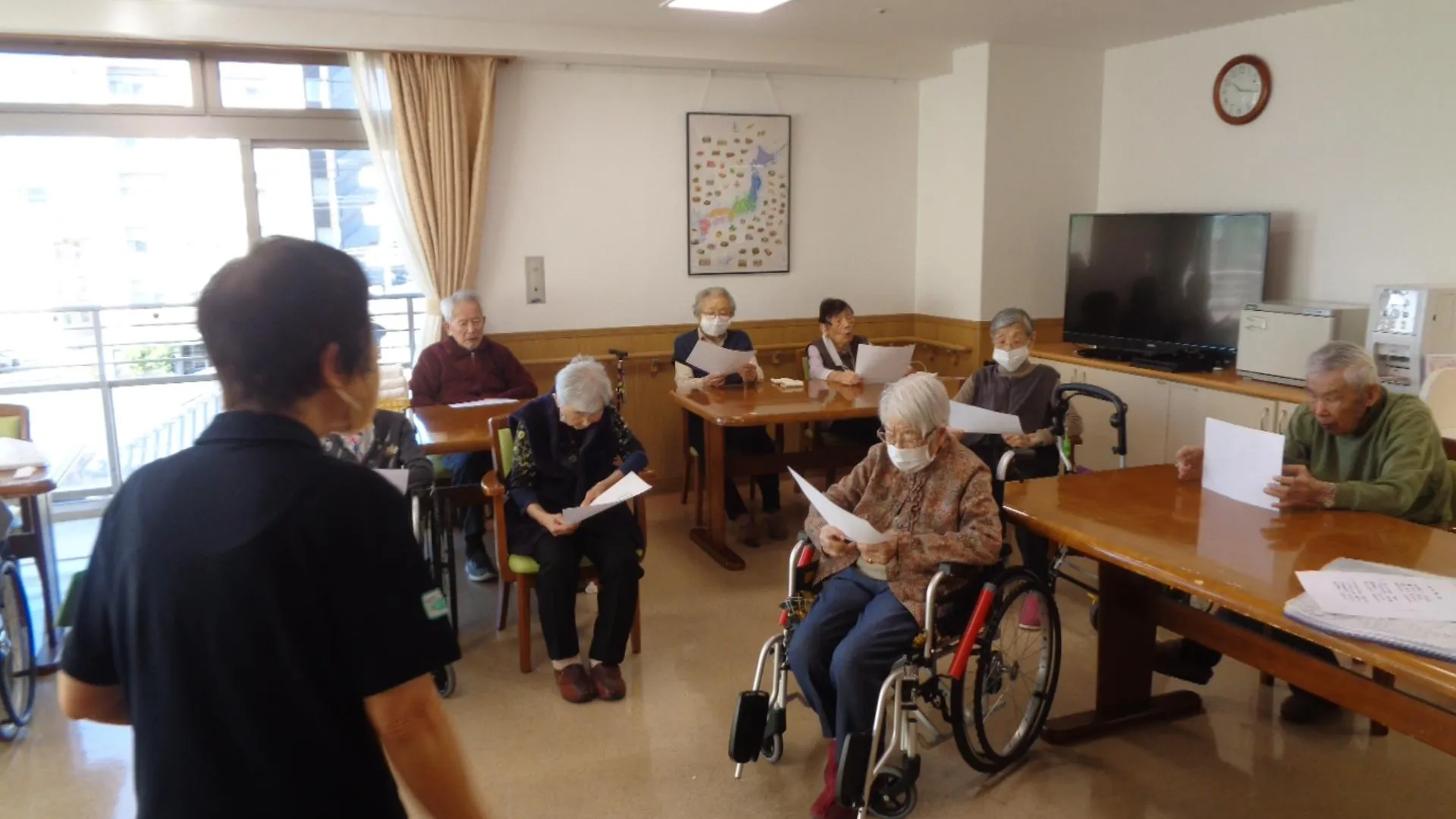 冬の寒さ厳しきおり、風邪などひかぬ様にと皆様大きな声で歌っていらっしゃいました。特にふるさとを唄われた時には全員でとても盛り上がり、元気いっぱいでした。