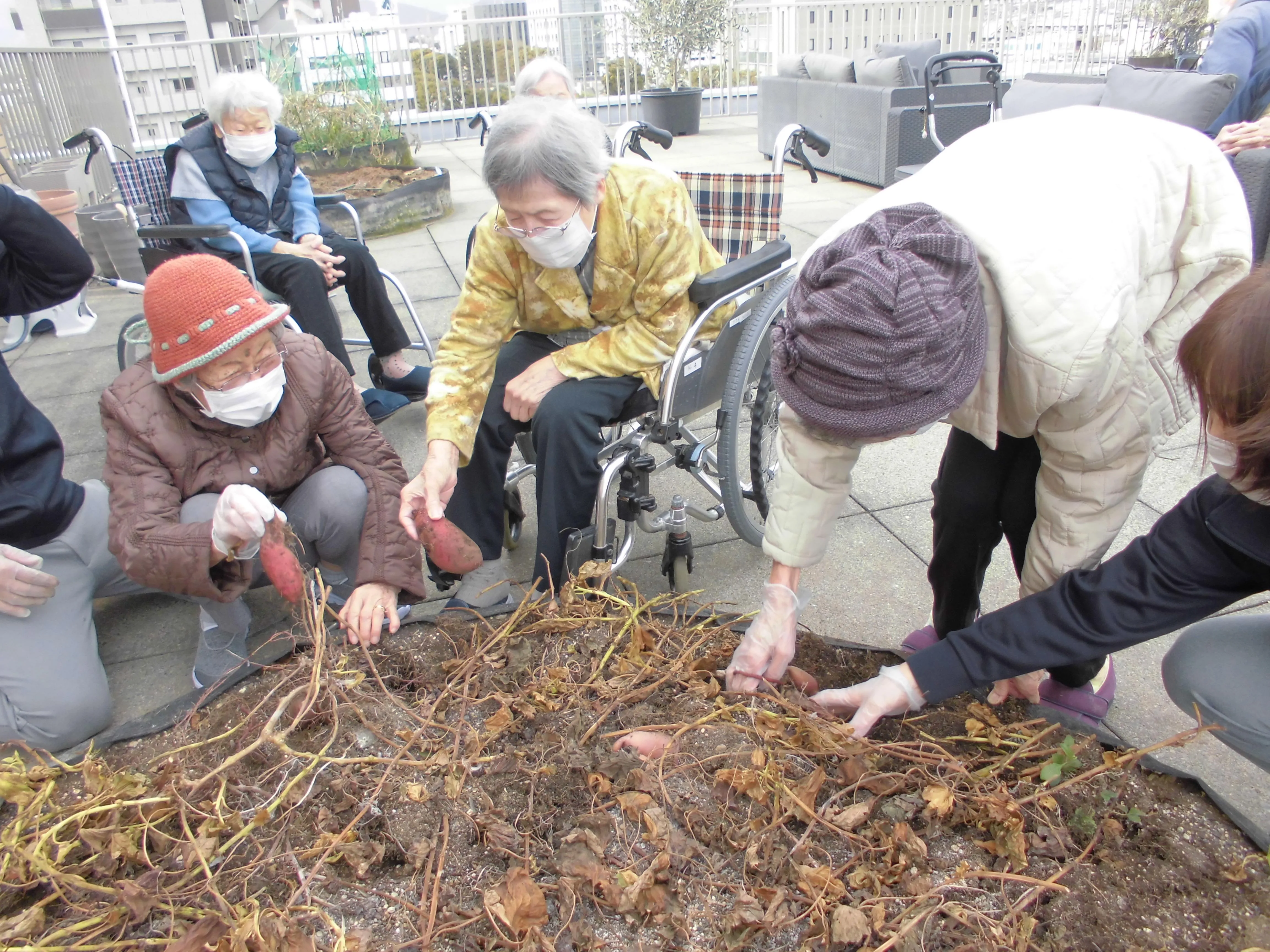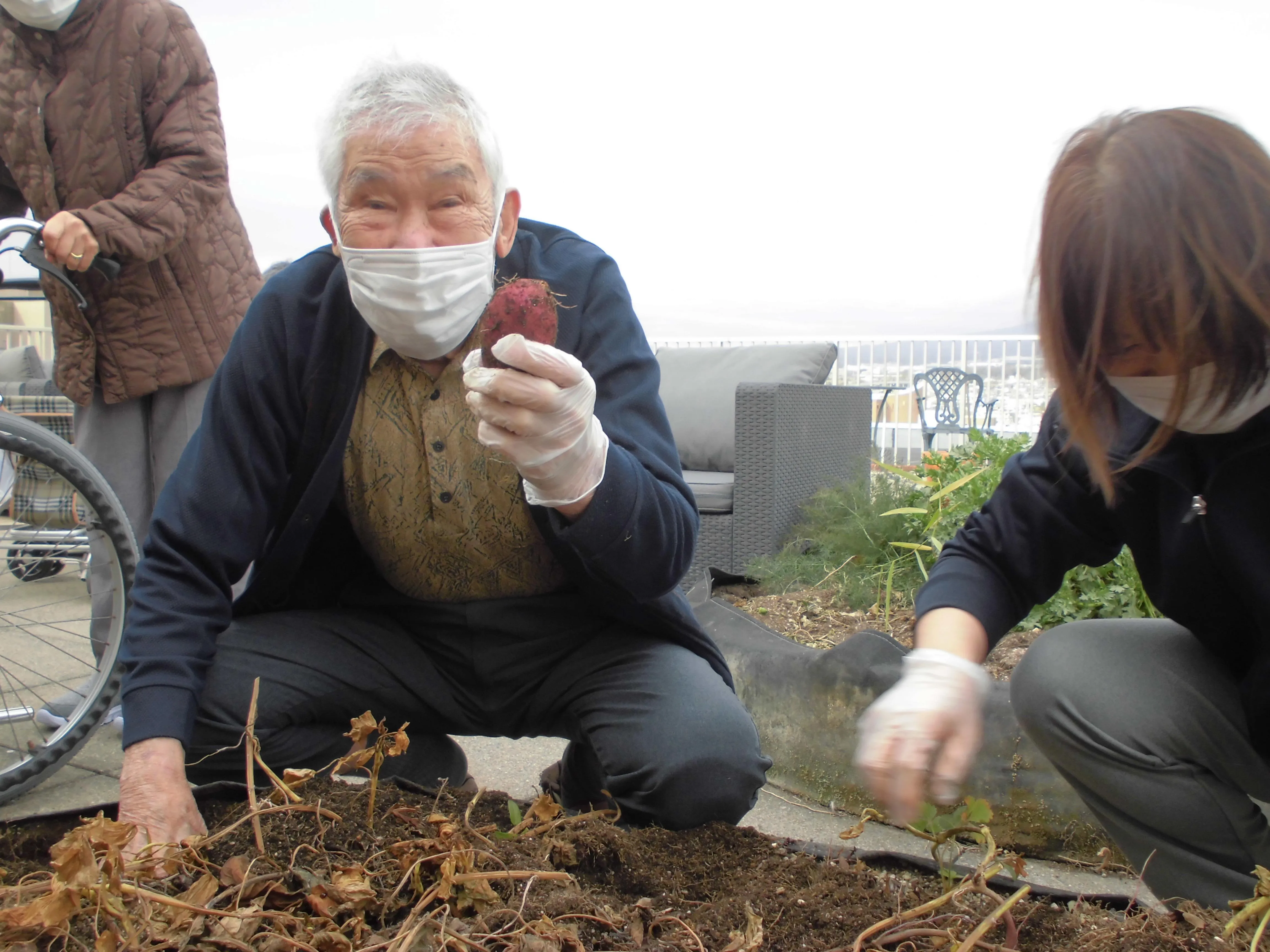 今日はスタッフとお客様とで、お芋掘りを行いました。