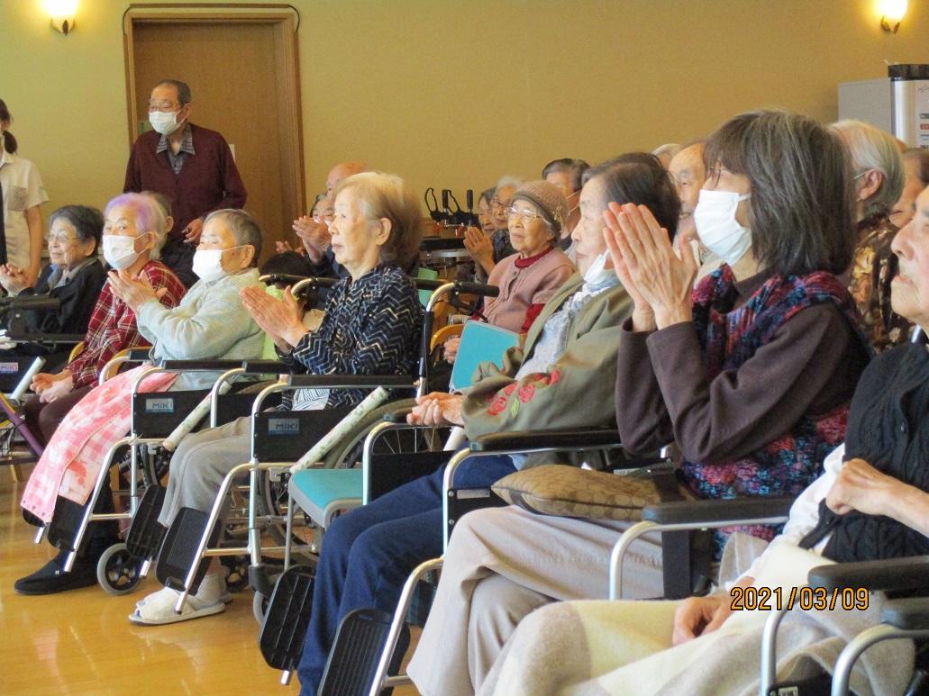 例年はワンちゃんが遊びに来る『アニマルセラピー』を行っていましたが、コロナ禍で楽しめることが少なくなっているので、今年は『わんわんサーカス』を呼んで、楽しい時間を過ごして頂きました。サーカスに後はワンちゃんとの記念写真で、お客様は大喜びでした。