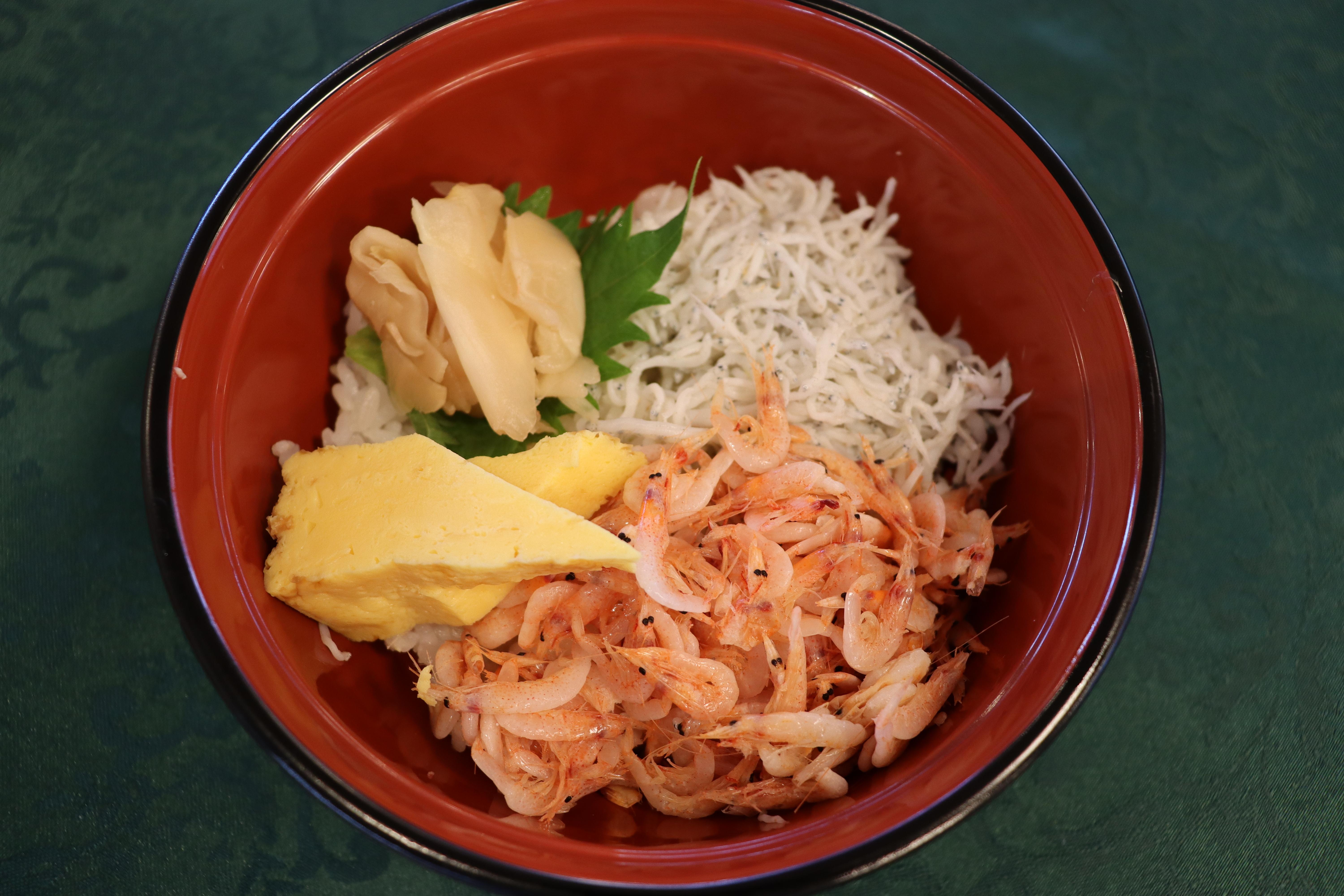 今日は釜揚げ、桜エビが追加された丼です。美味しいですよ!