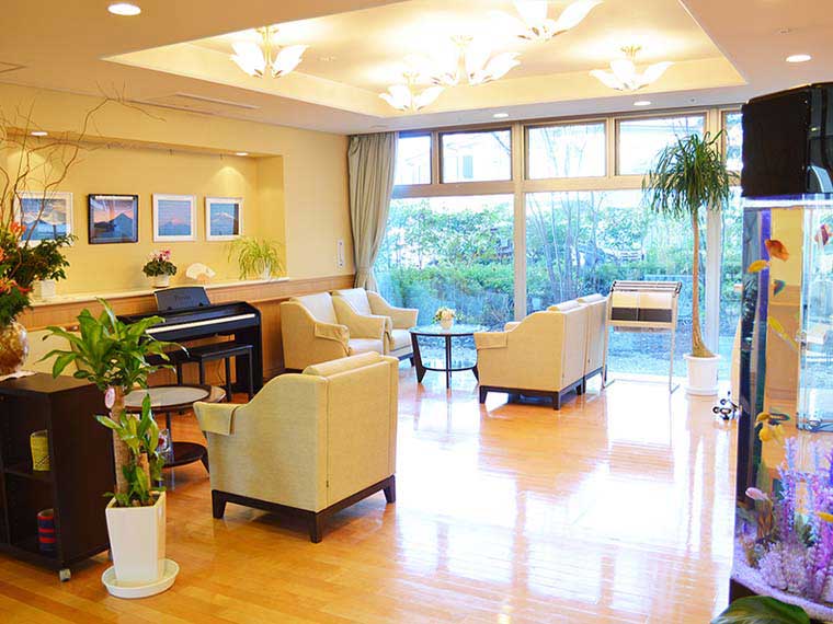富士山を眺めながら、ゆったりと暮らしていただけます。ご家族との時間を大切に、面会や外出などが比較的自由な施設です。